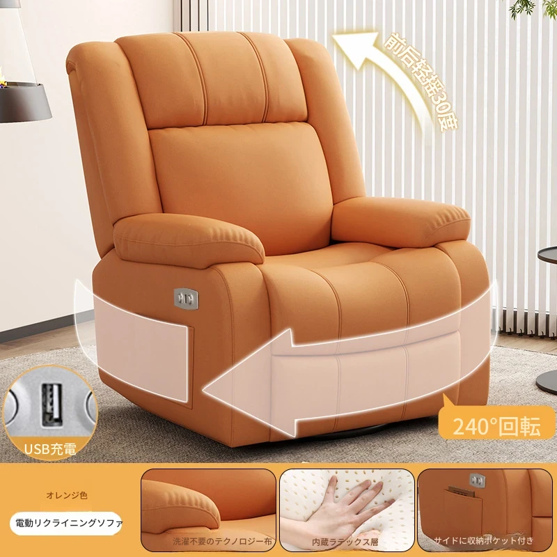 【テクノロジーファブリック】エイマオレンジ-電動リクライニング+回転