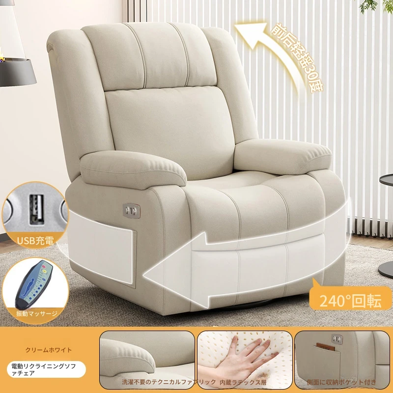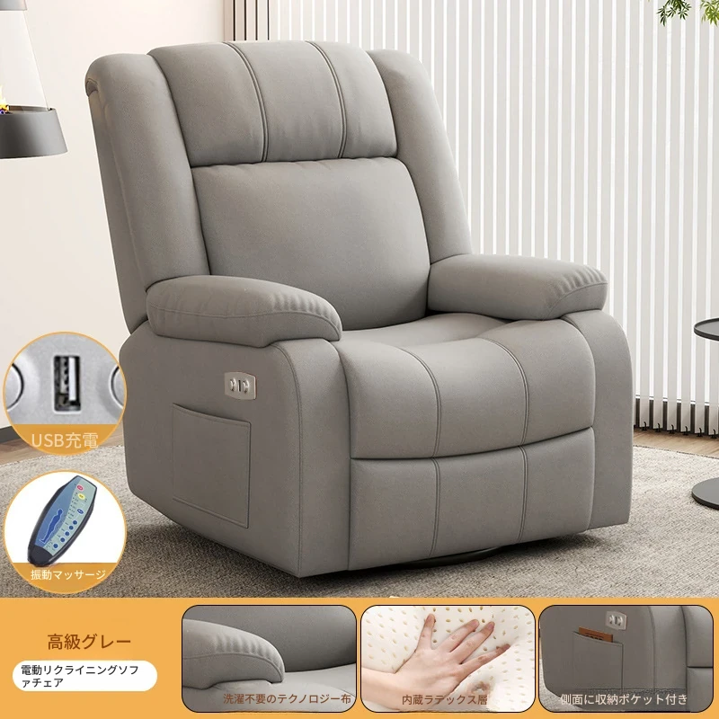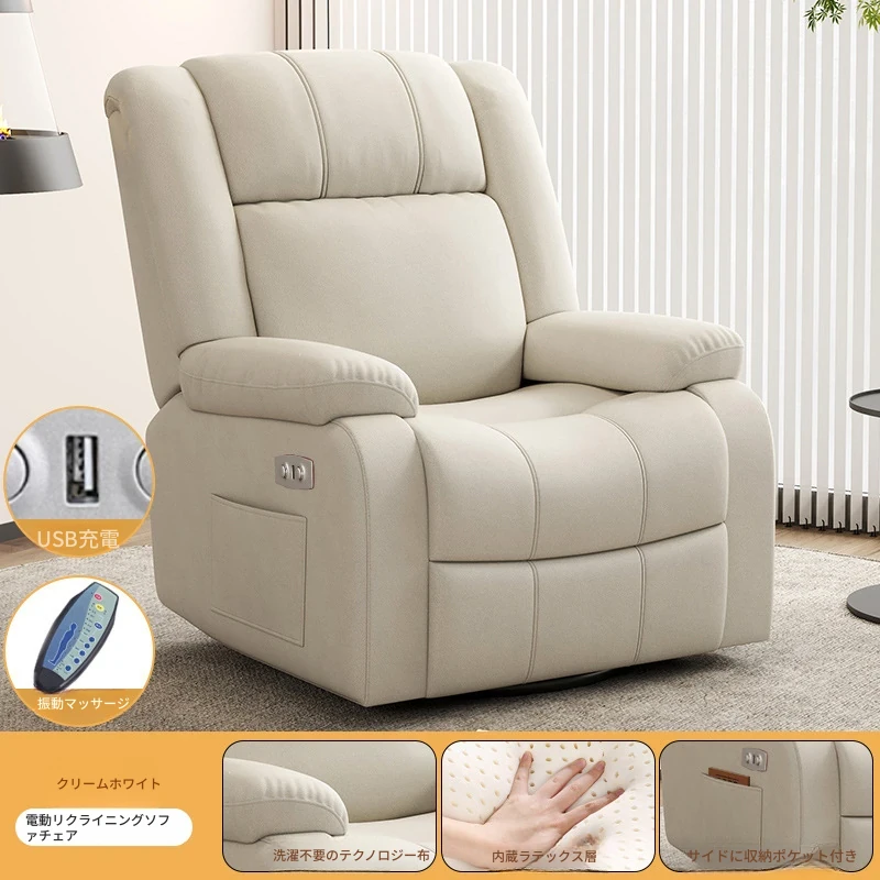 小型空間に最適!電動多機能ソファーベッド、リクライニング可能なシングルチェア。マッサージ機能付き、ネイルケアもできる快適な布製リラックスソファ。あなたのリビングにぴったりの贅沢なひとときを!