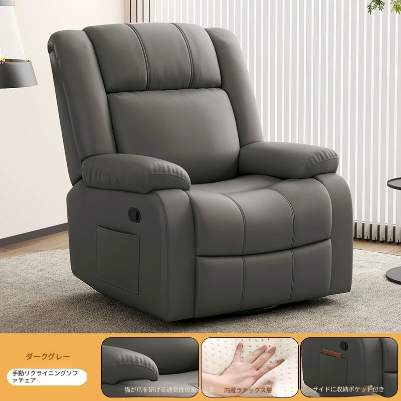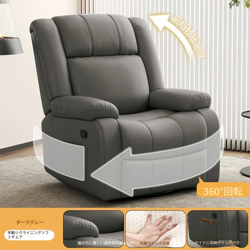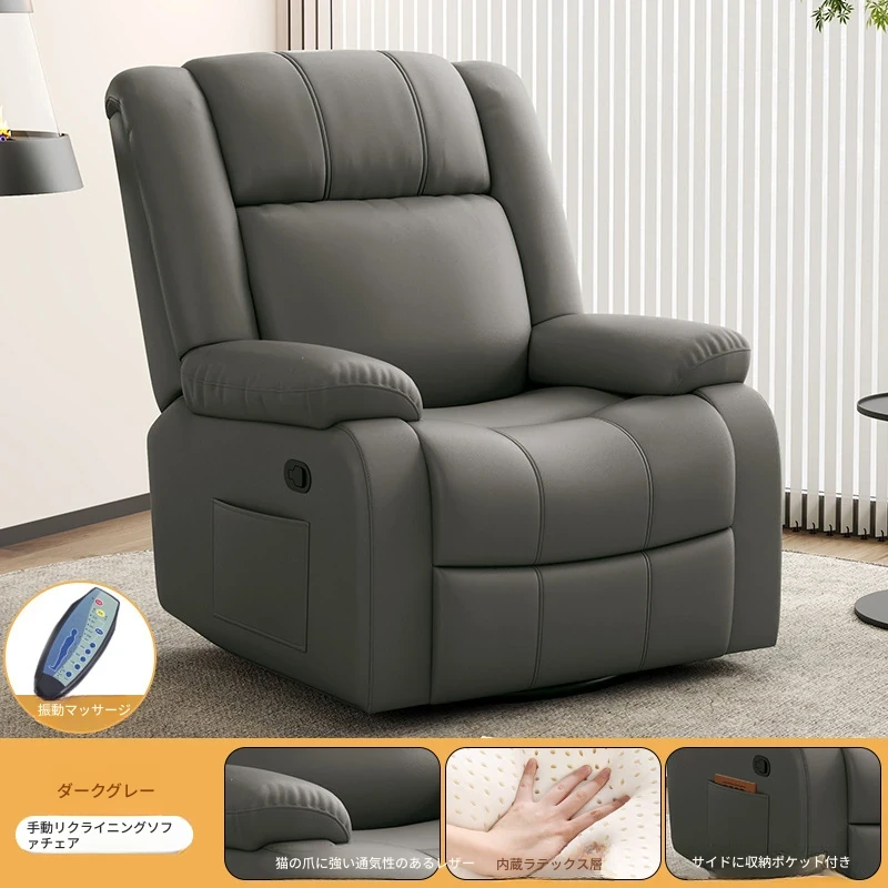 【キャットスクラッチレザー】ダークグレー-手動リクライニング+回転+振動マッサージ