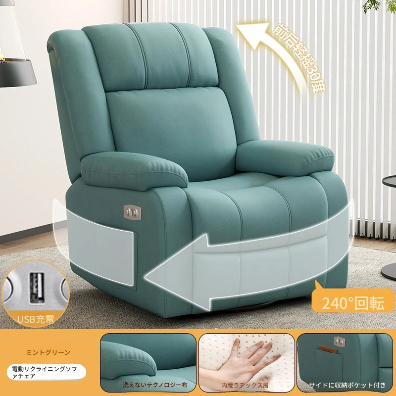 【テクノロジーファブリック】ミントグリーン-電動リクライニング+回転+振動マッサージ