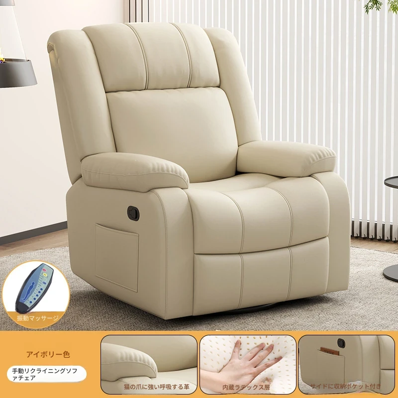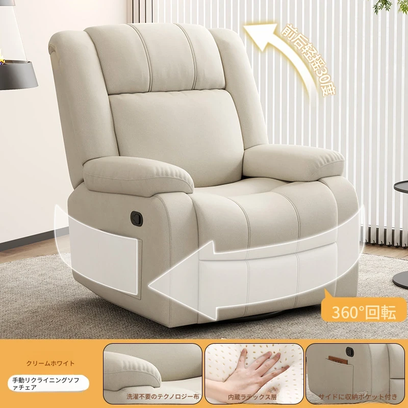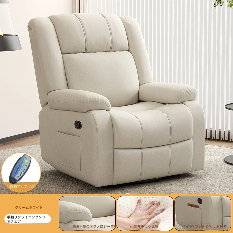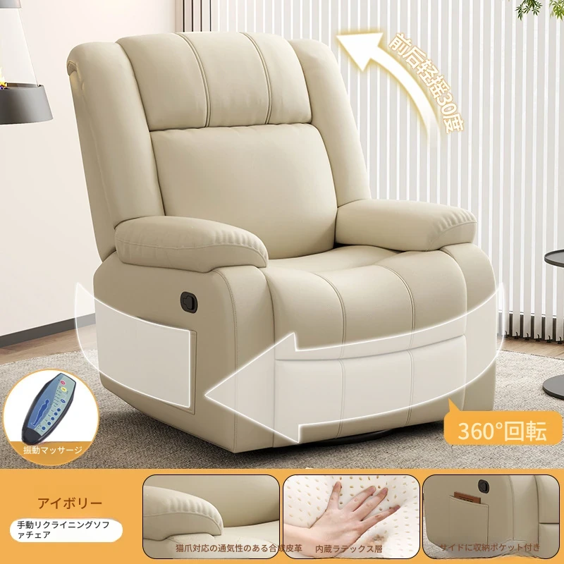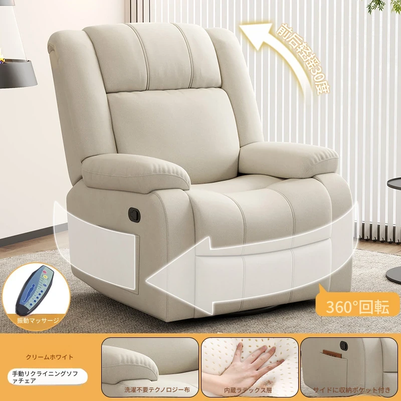 【テクノロジーファブリック】クリームホワイト-手動リクライニング+回転+振動マッサージ