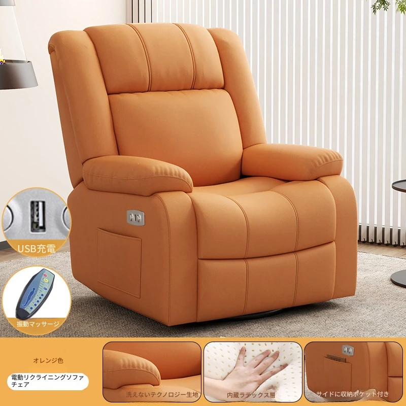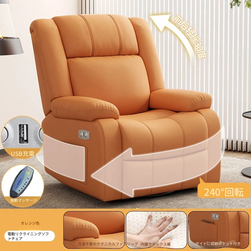 【テクノロジーファブリック】エイマオレンジ-電動リクライニング+回転+振動マッサージ