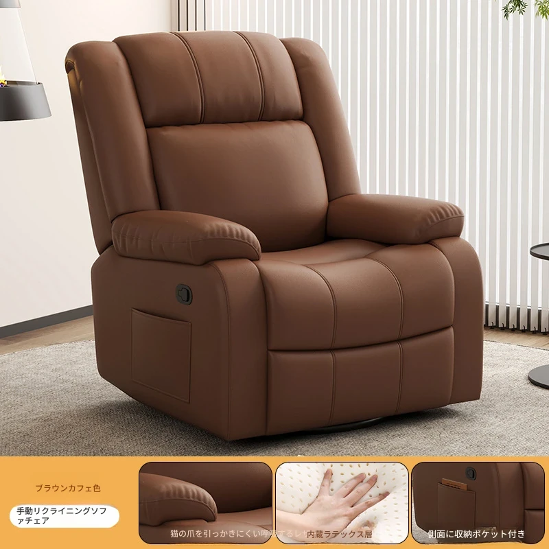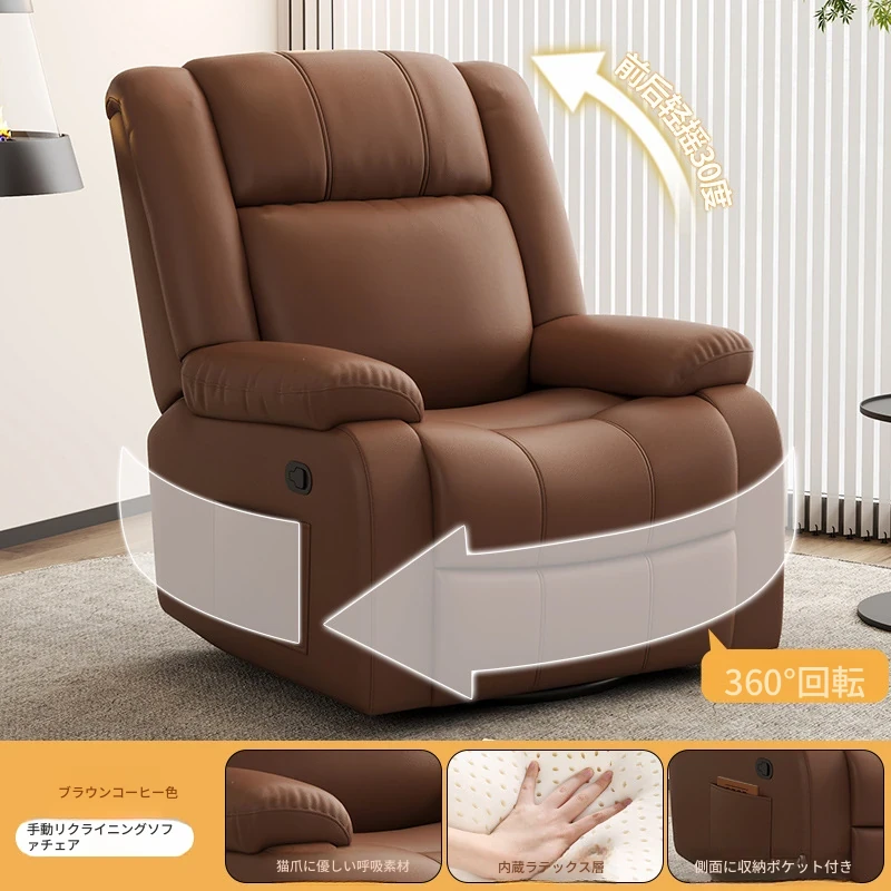 【キャットスクラッチレザー】ブラウン-手動リクライニング+回転