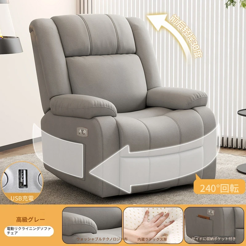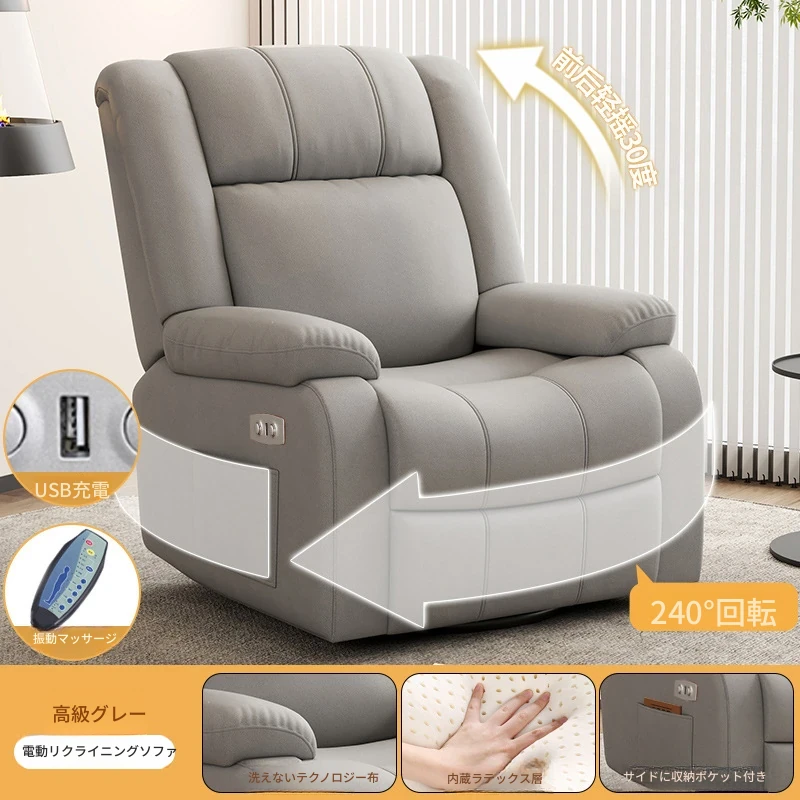 【テクノロジーファブリック】ライトグレー-電動リクライニング+回転+振動マッサージ