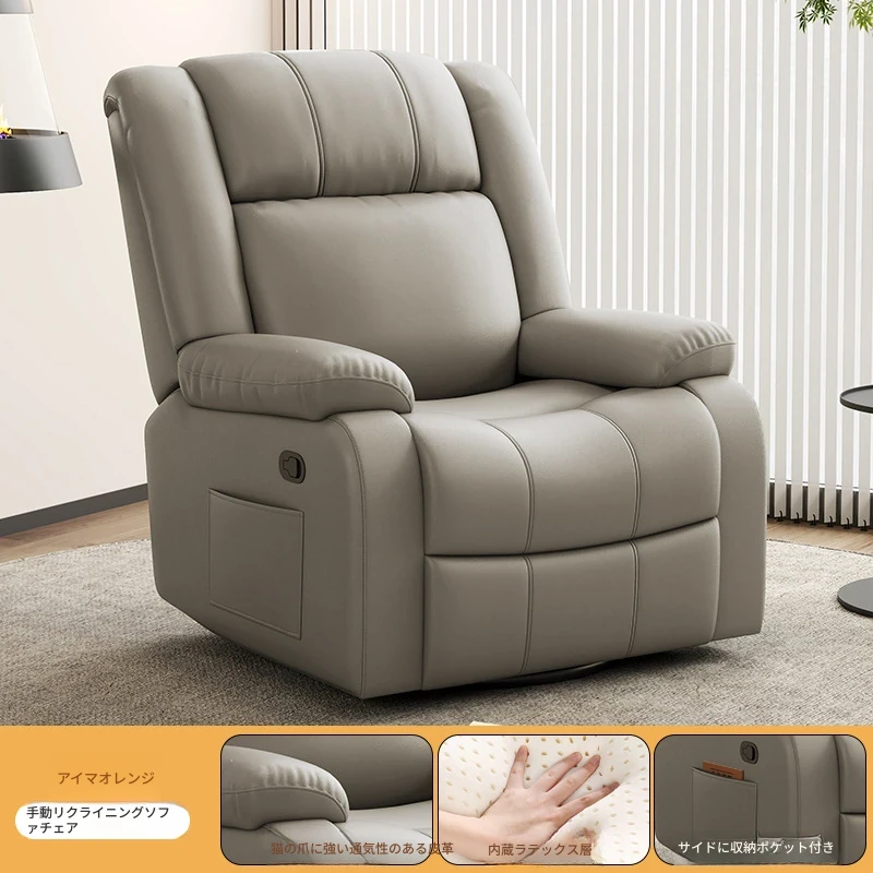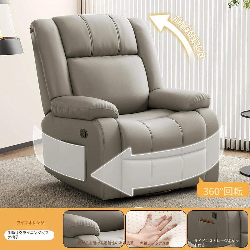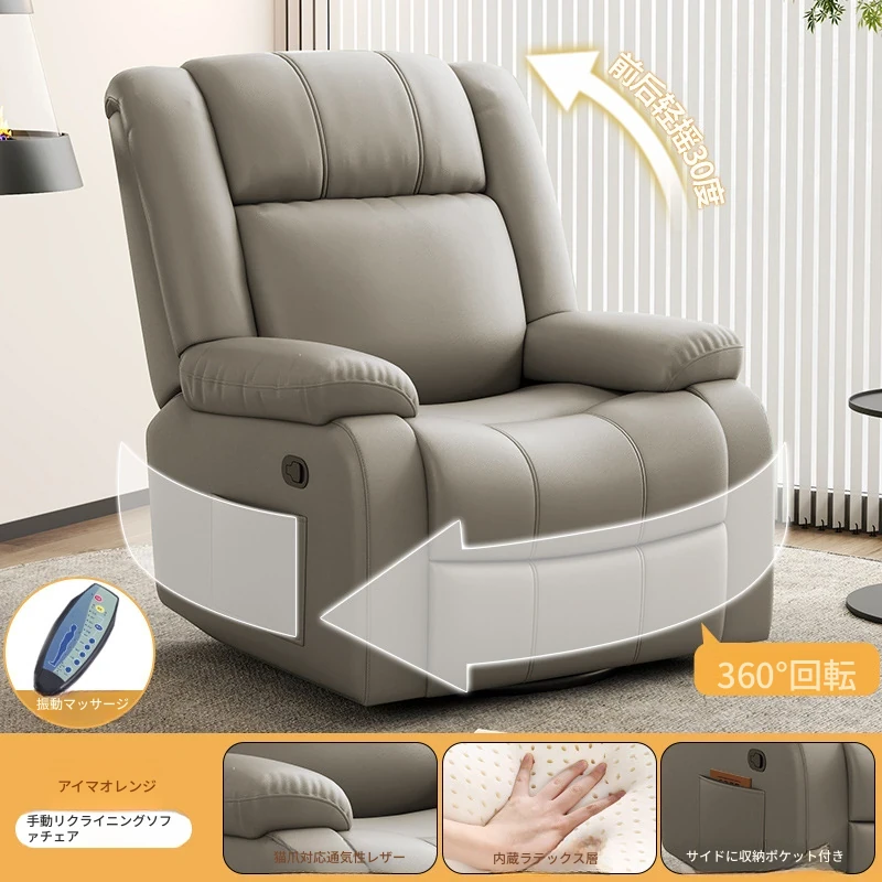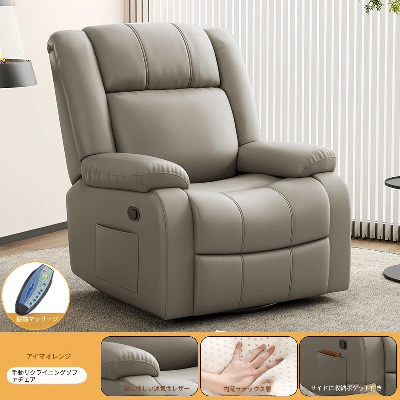 【キャットスクラッチレザー】ライトグレー-手動リクライニング+回転+振動マッサージ