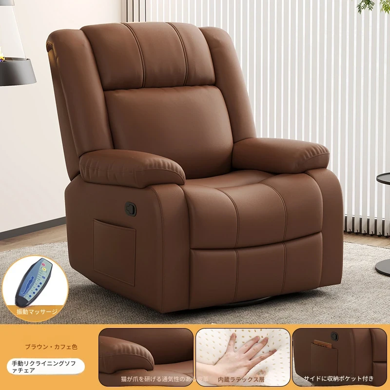 【キャットスクラッチレザー】ブラウン-手動リクライニング+回転+振動マッサージ