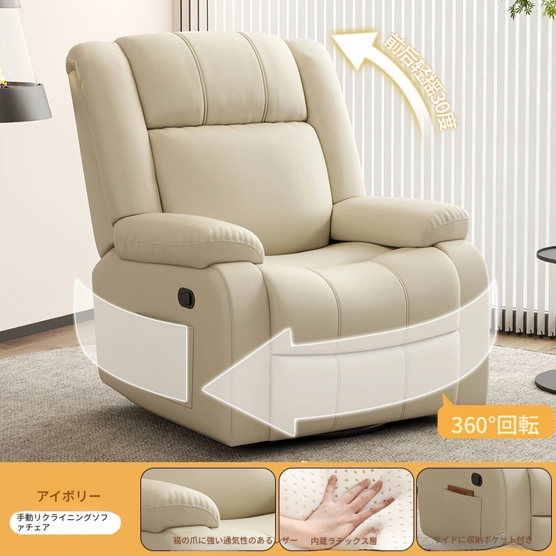 【キャットスクラッチレザー】ベージュ-手動リクライニング+回転