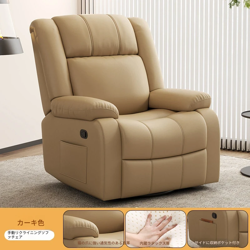 【キャットスクラッチレザー】カーキ-手動リクライニング+回転