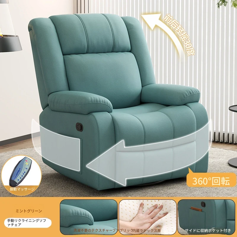 【テクノロジーファブリック】ミントグリーン-手動リクライニング+回転+振動マッサージ