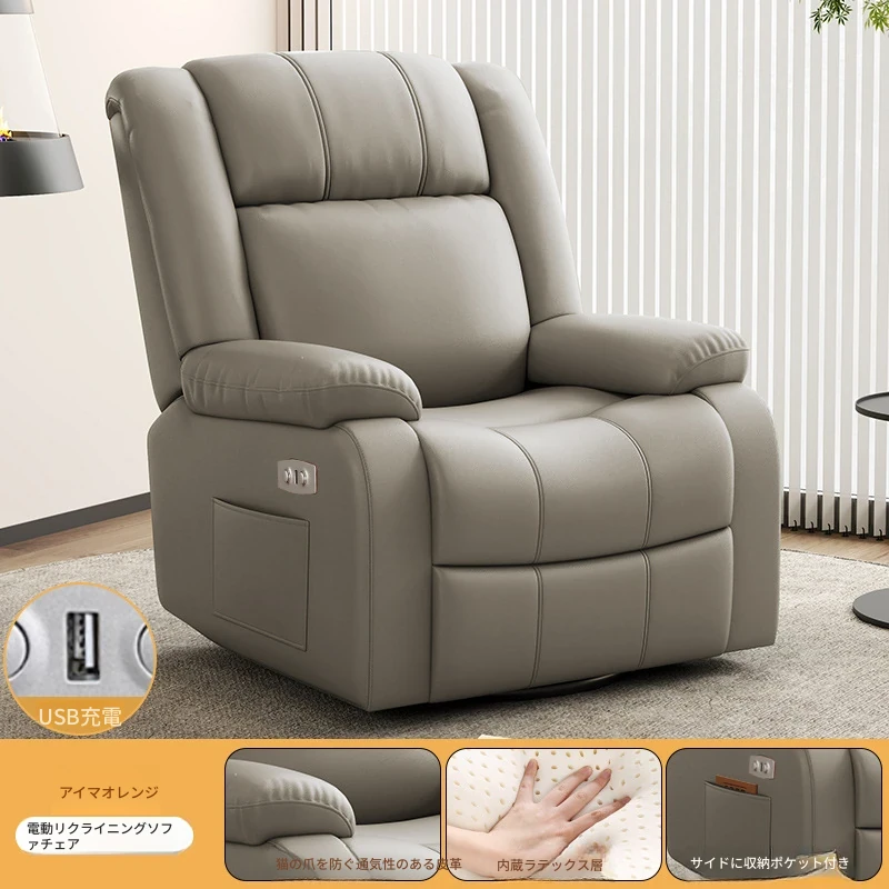 【キャットスクラッチレザー】ライトグレー-電動リクライニング+回転