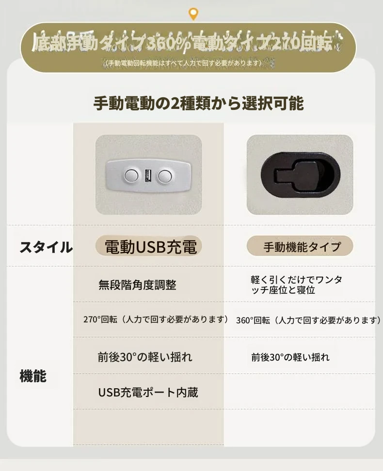 【キャットスクラッチレザー】ベージュ-手動リクライニング+回転+振動マッサージ