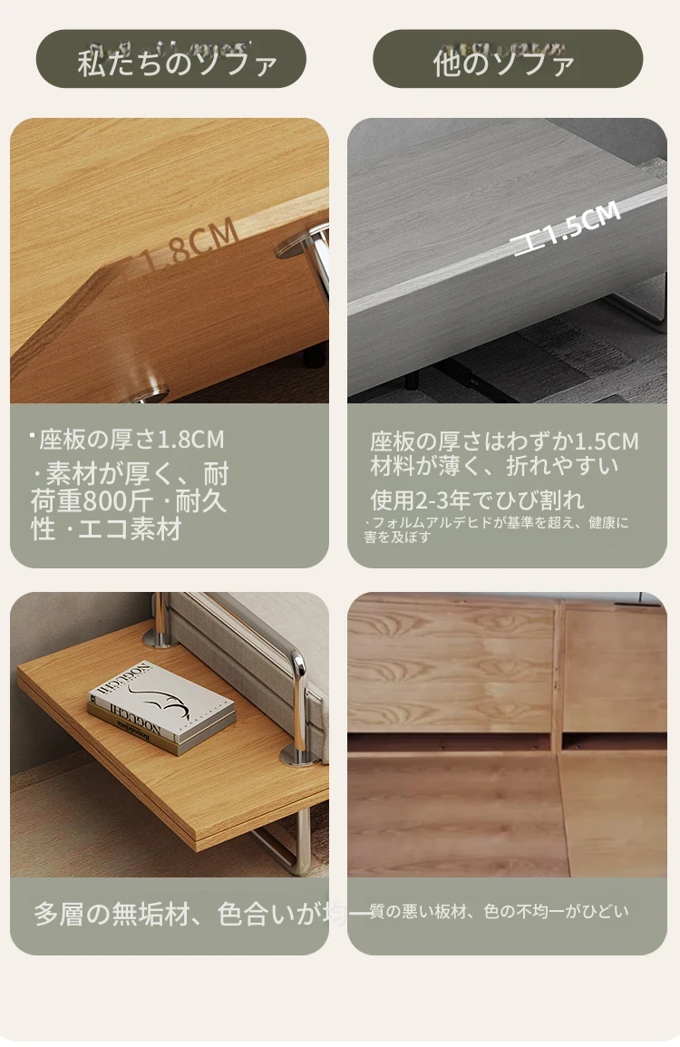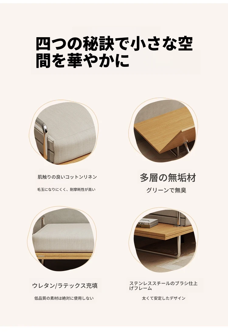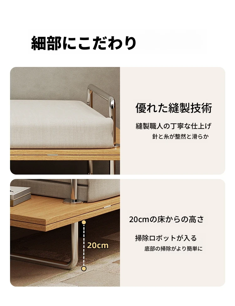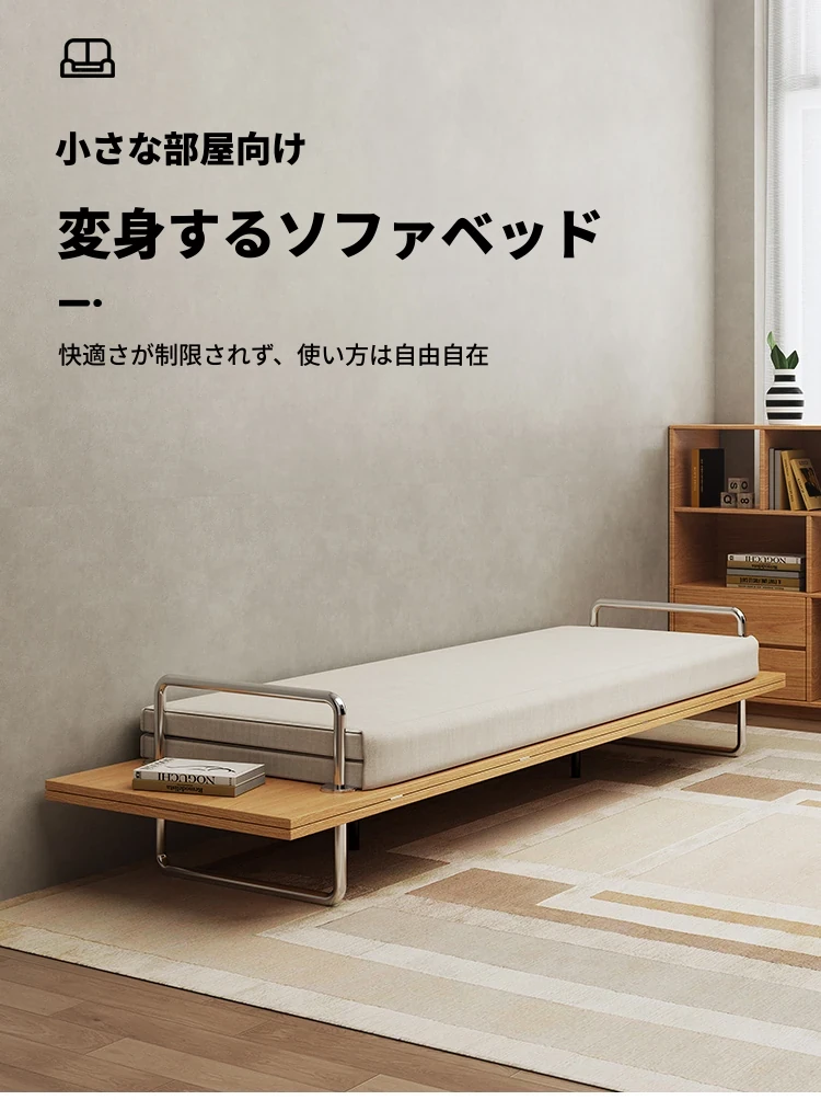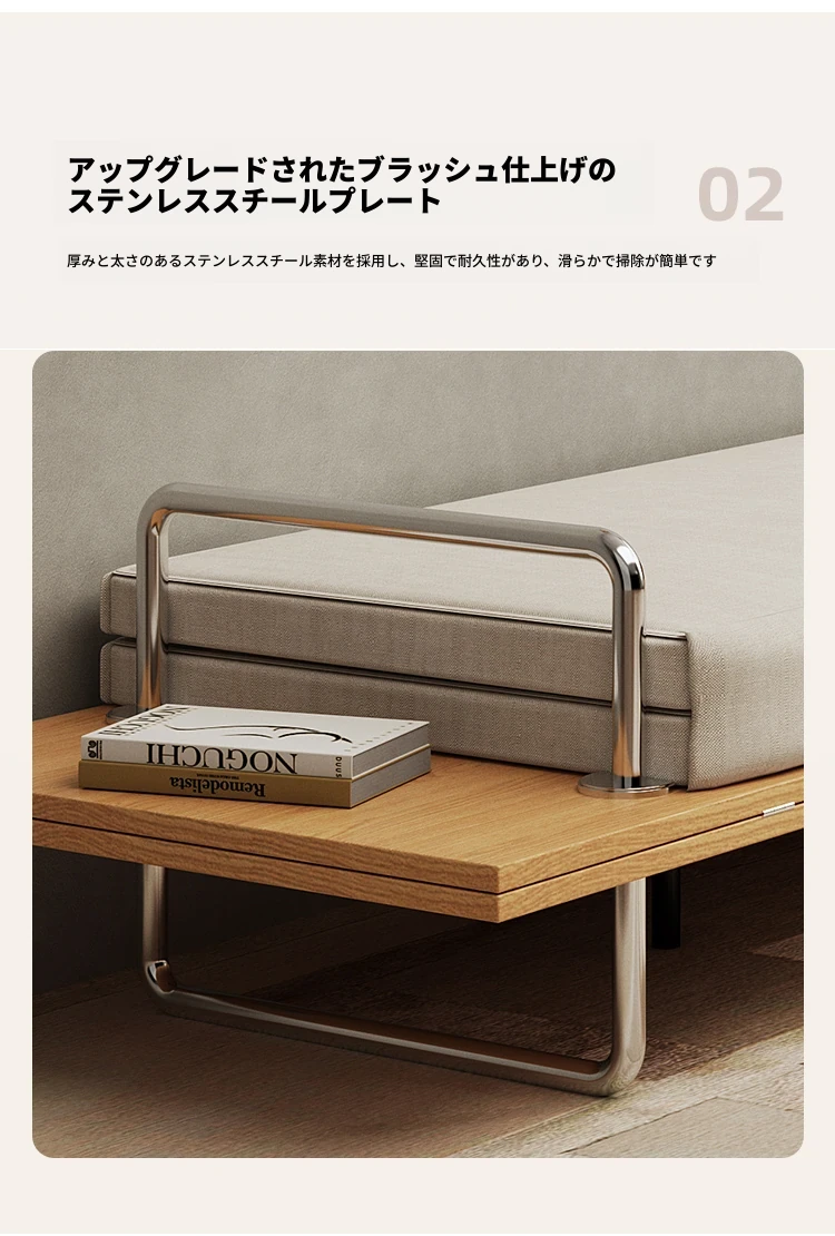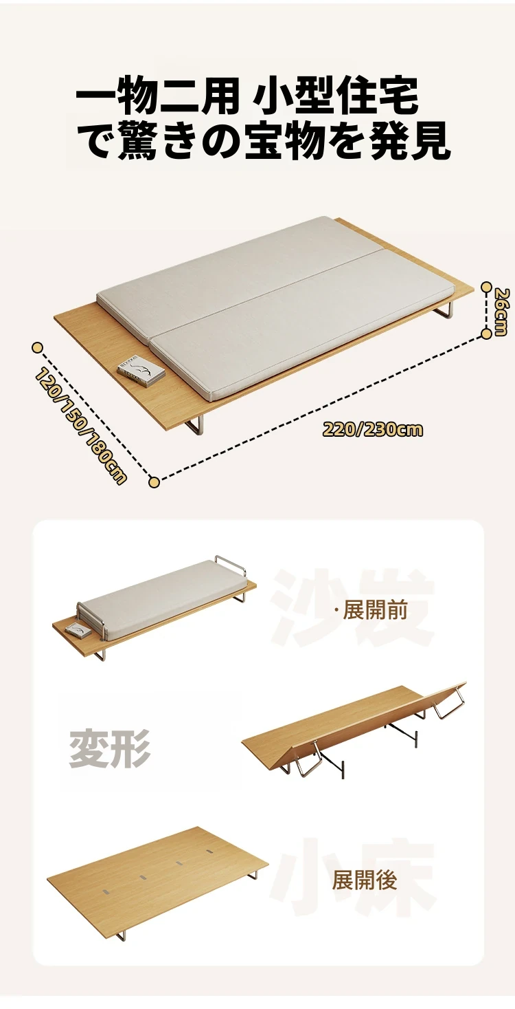 オーク色60CM幅シングルベッドフレーム(展開120CM)+スポンジクッション取り付け込み