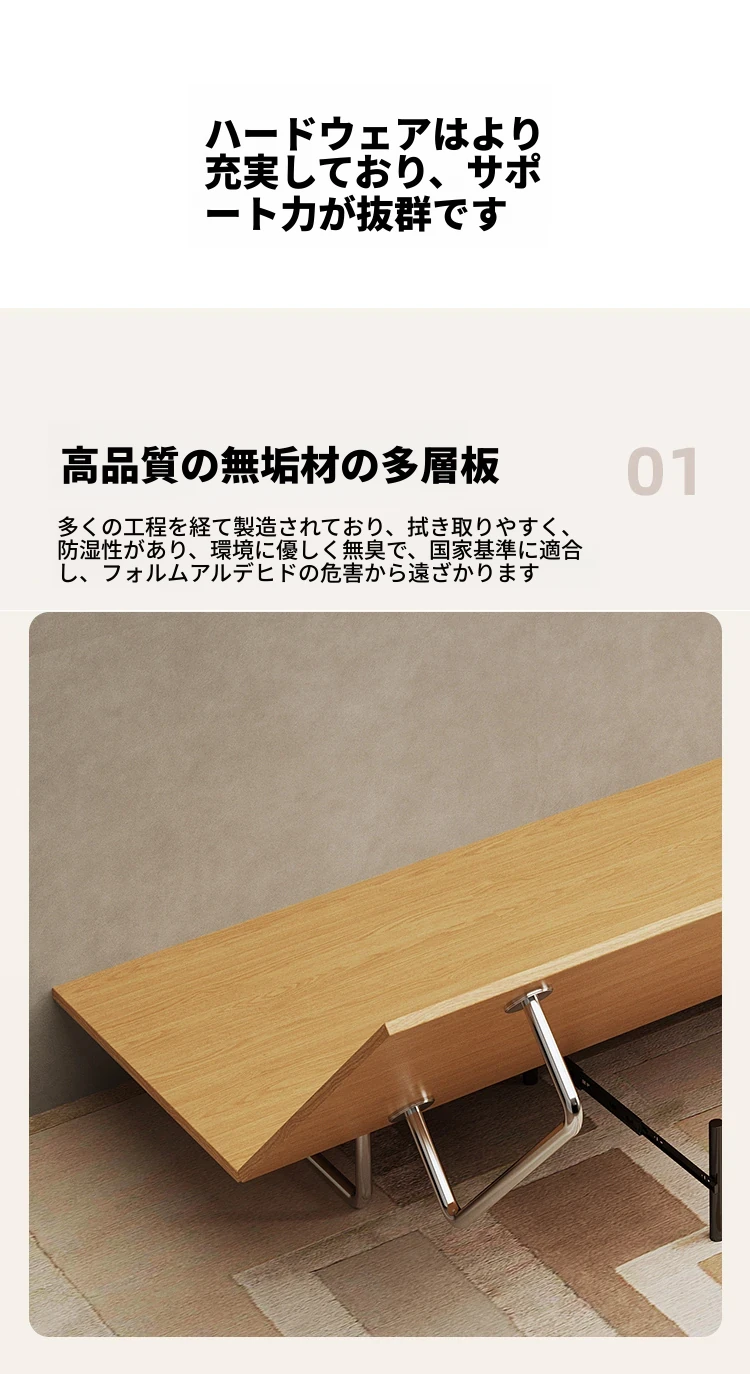 オーク色75CM幅シングルベッドフレーム(展開150CM)取り付け込み