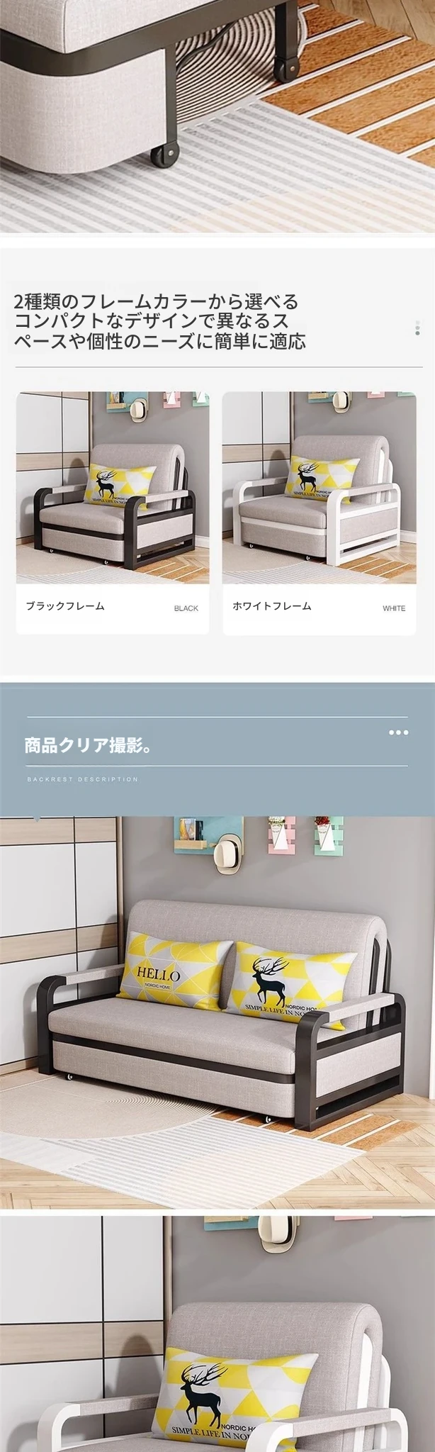 【麻布款】浅灰色+黒架+可拆洗布套 赠送抱枕、通用