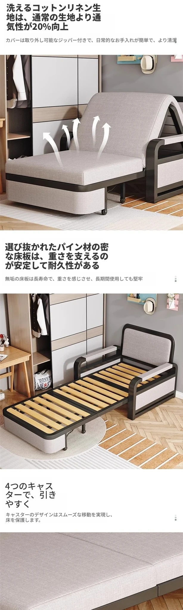 【麻布款】カーキ色+黒架+可拆洗布套 赠送抱枕、通用