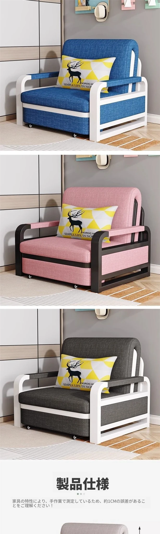【麻布款】ピンク色+黒架+可拆洗布套 赠送抱枕、通用