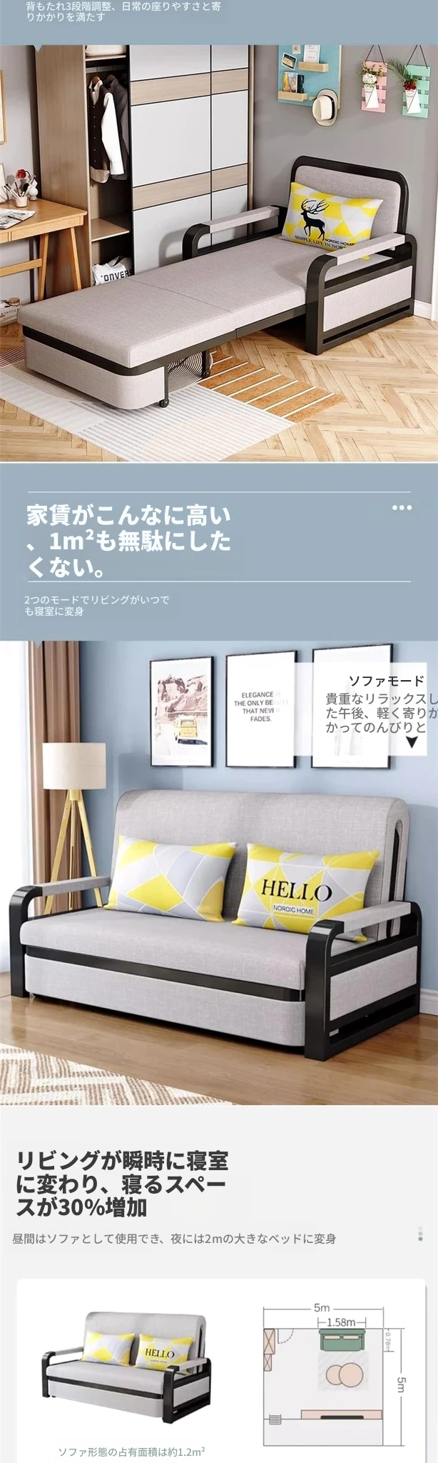 【1.58米储物款】5cmスポンジ+2cmココナッツファイバー+硬めの脊椎サポート