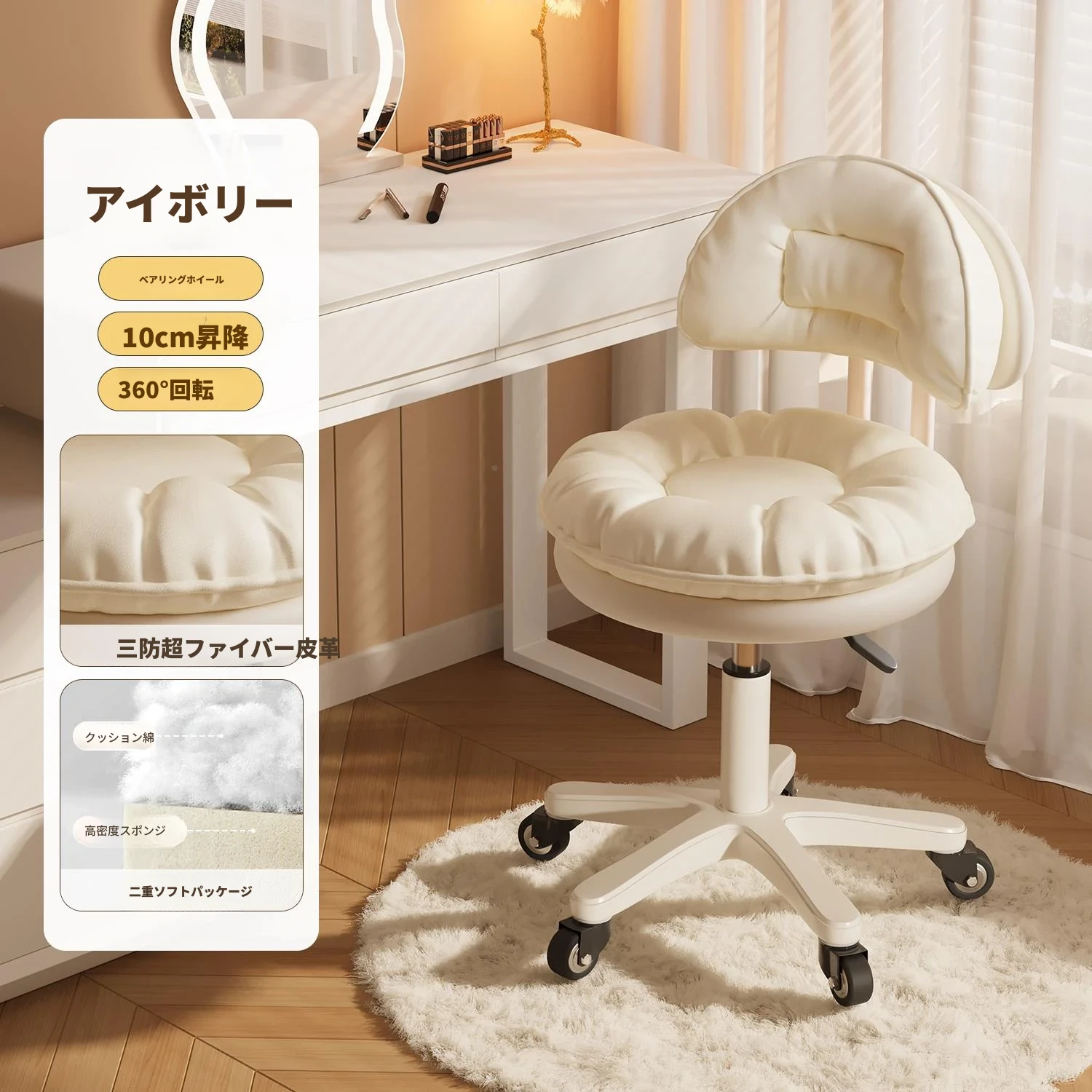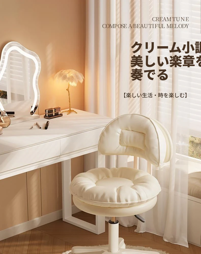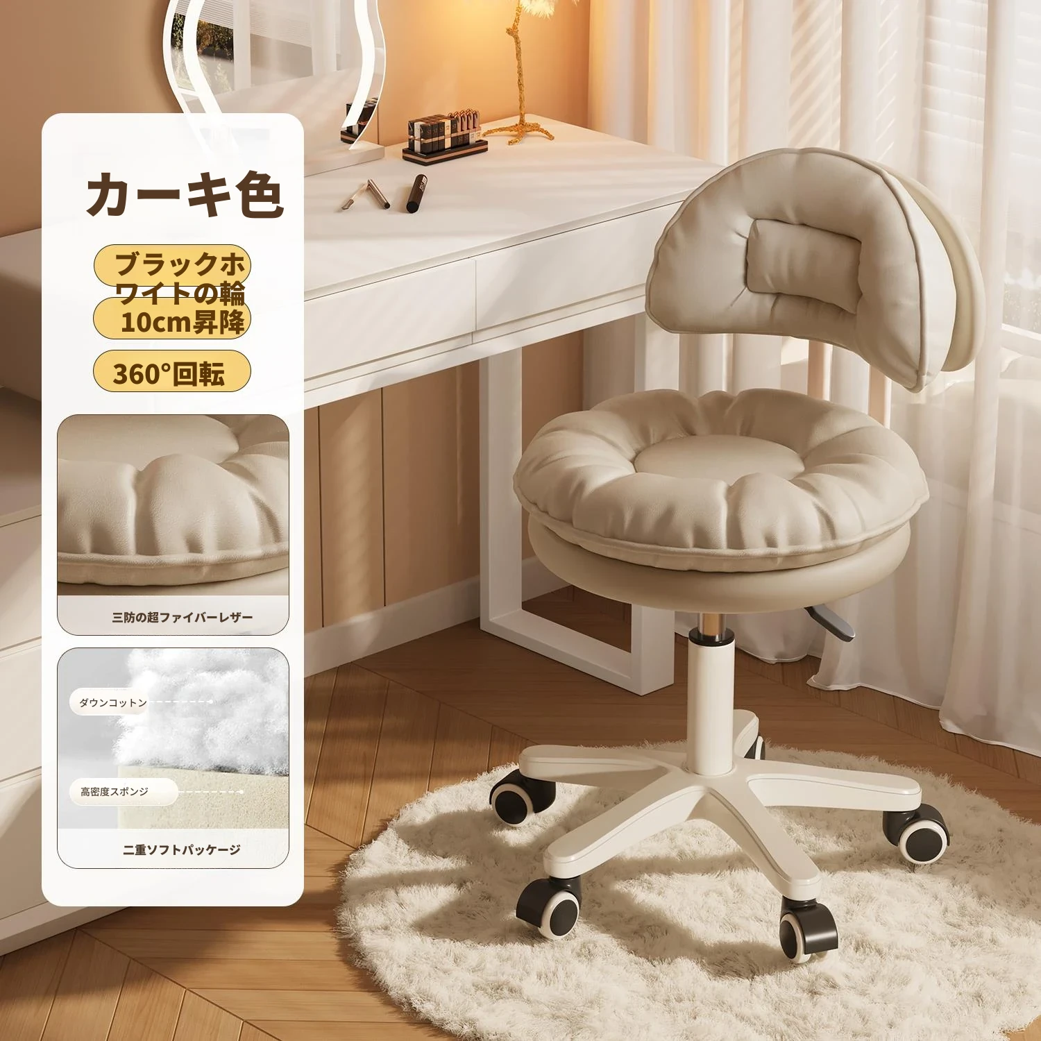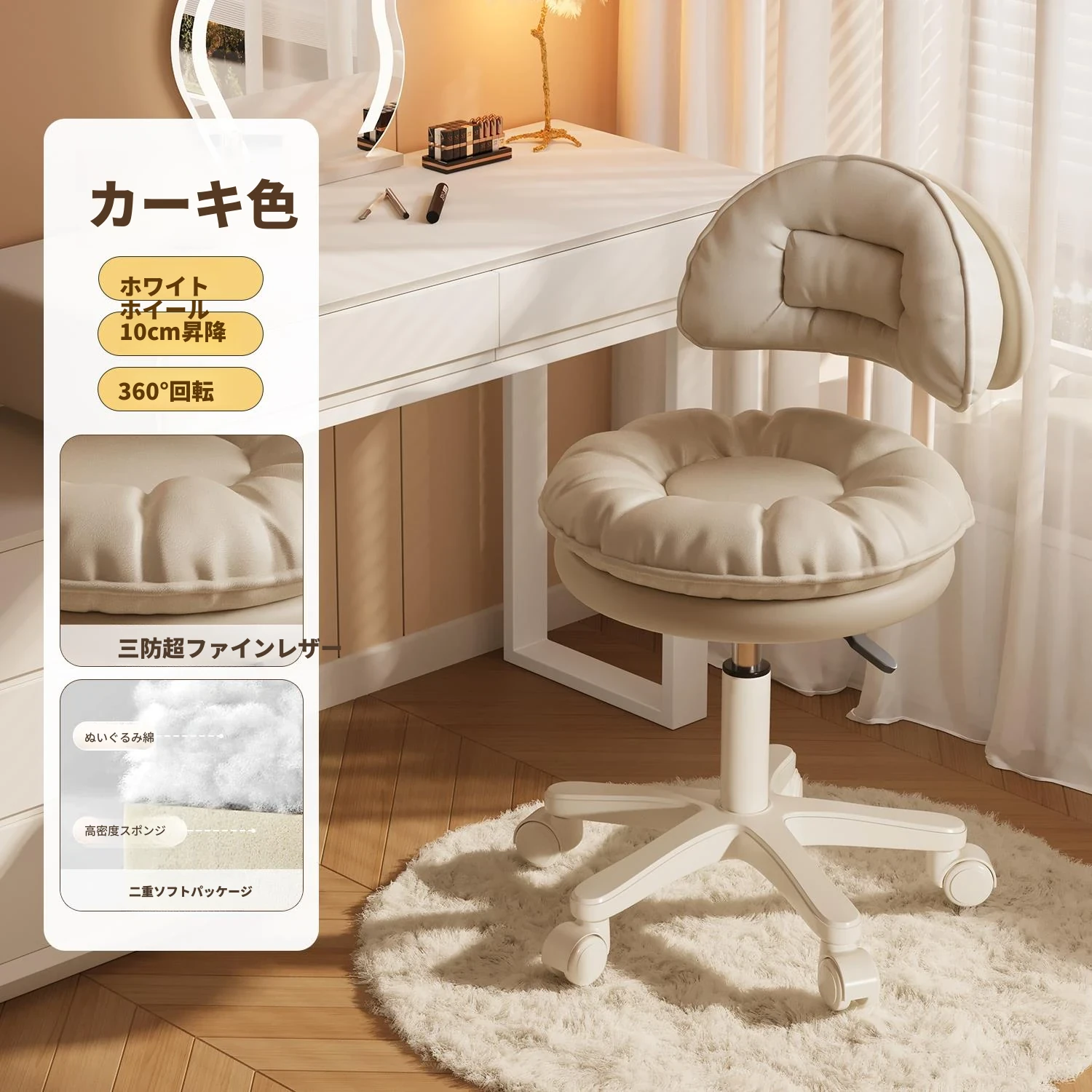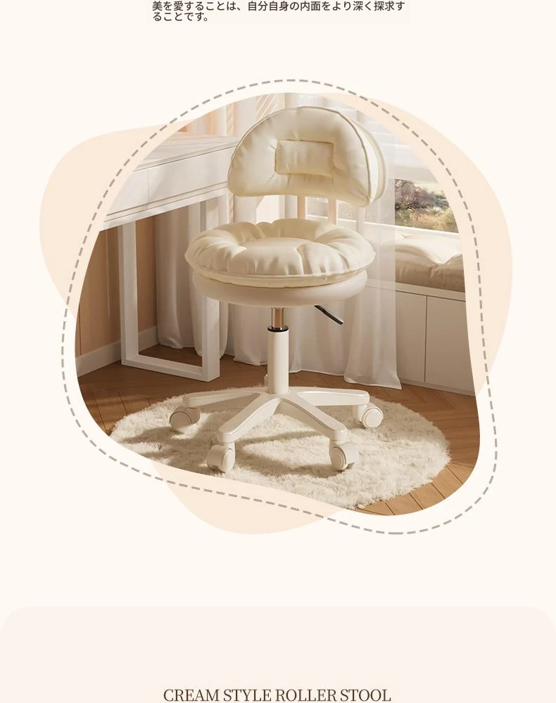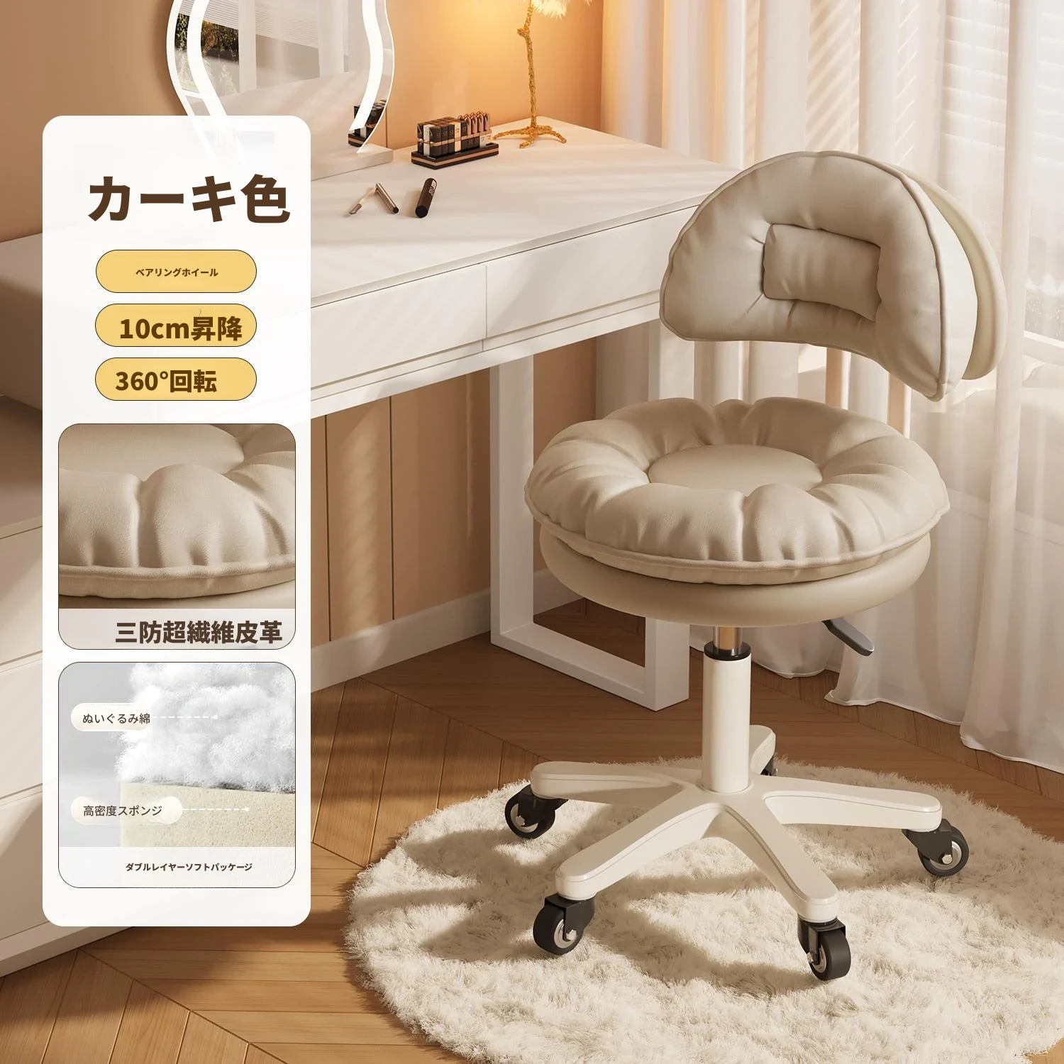 クリーム風のメイクアップチェア|女性にぴったりの昇降式デスクチェア|化粧台やネイルサロンに最適なリラックスチェア|おしゃれで快適な寝室用椅子!