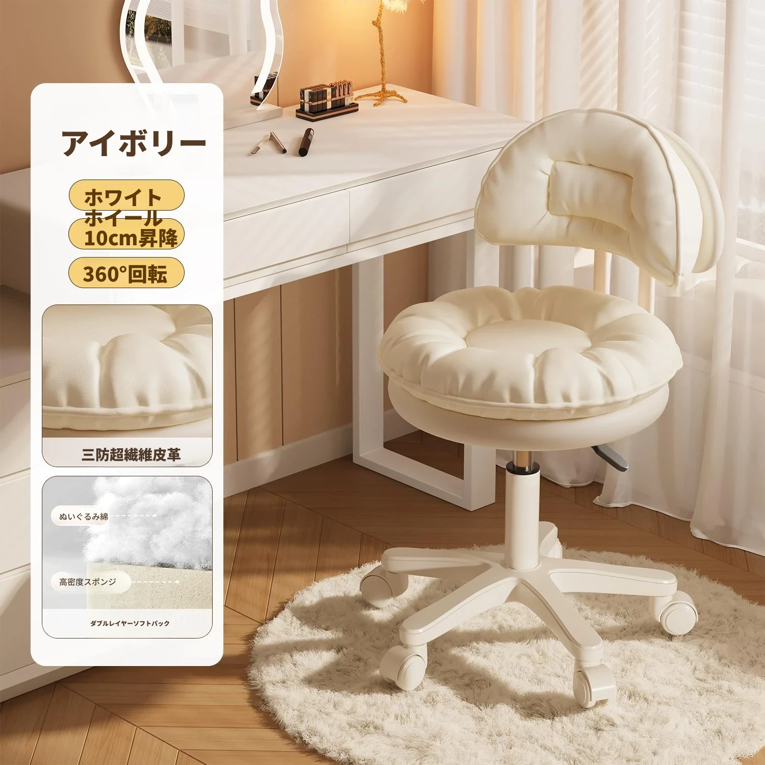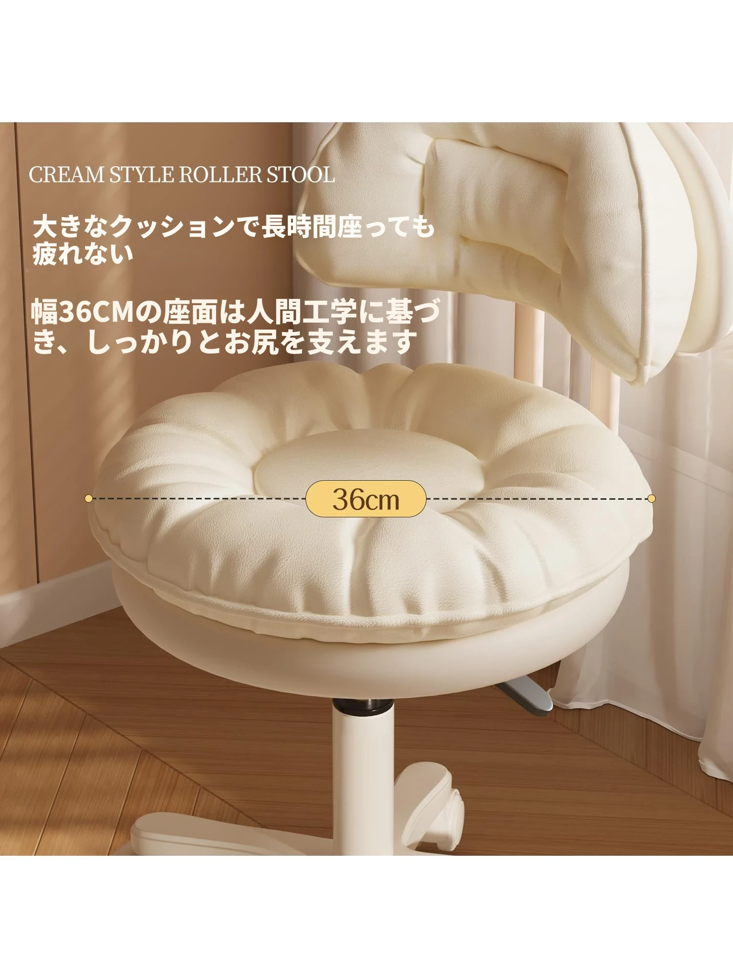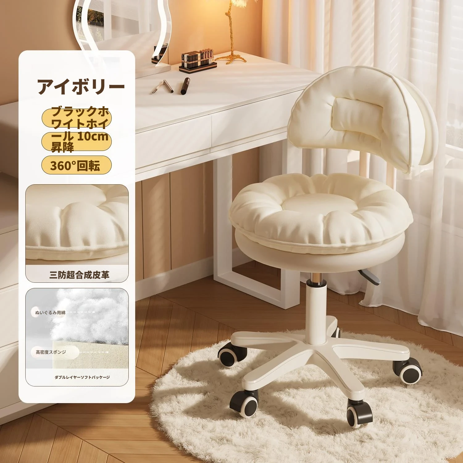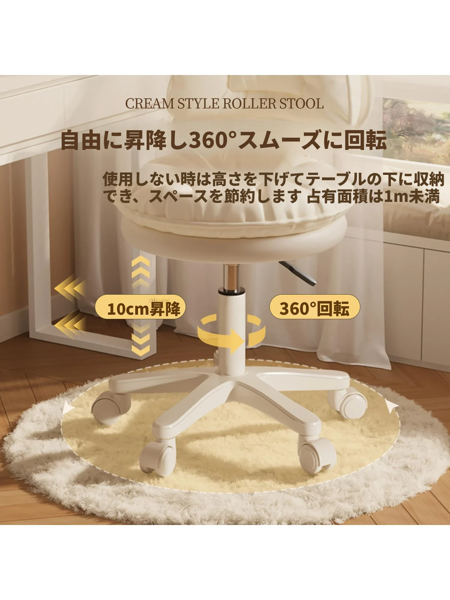 クリーム風のメイクアップチェア|女性にぴったりの昇降式デスクチェア|化粧台やネイルサロンに最適なリラックスチェア|おしゃれで快適な寝室用椅子!