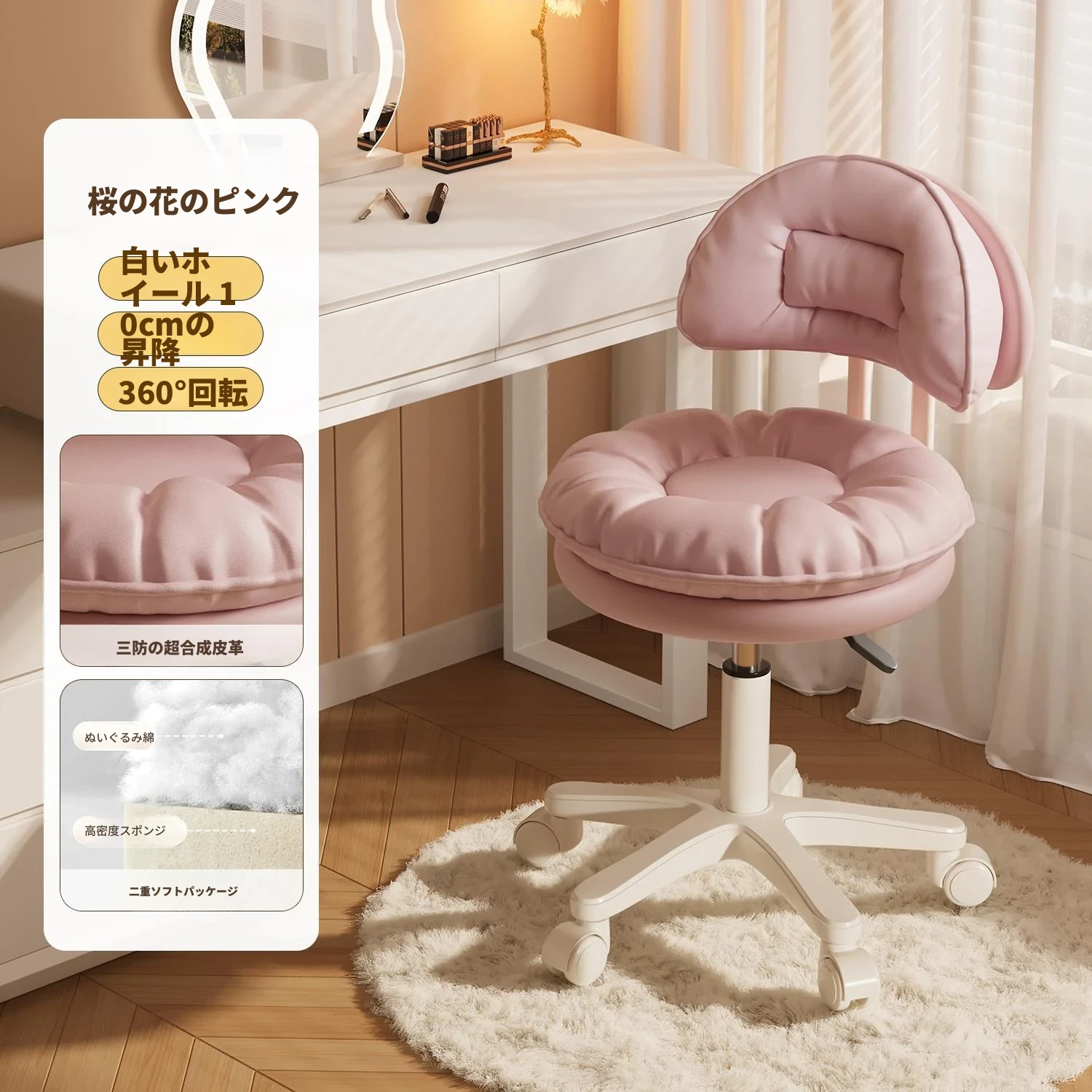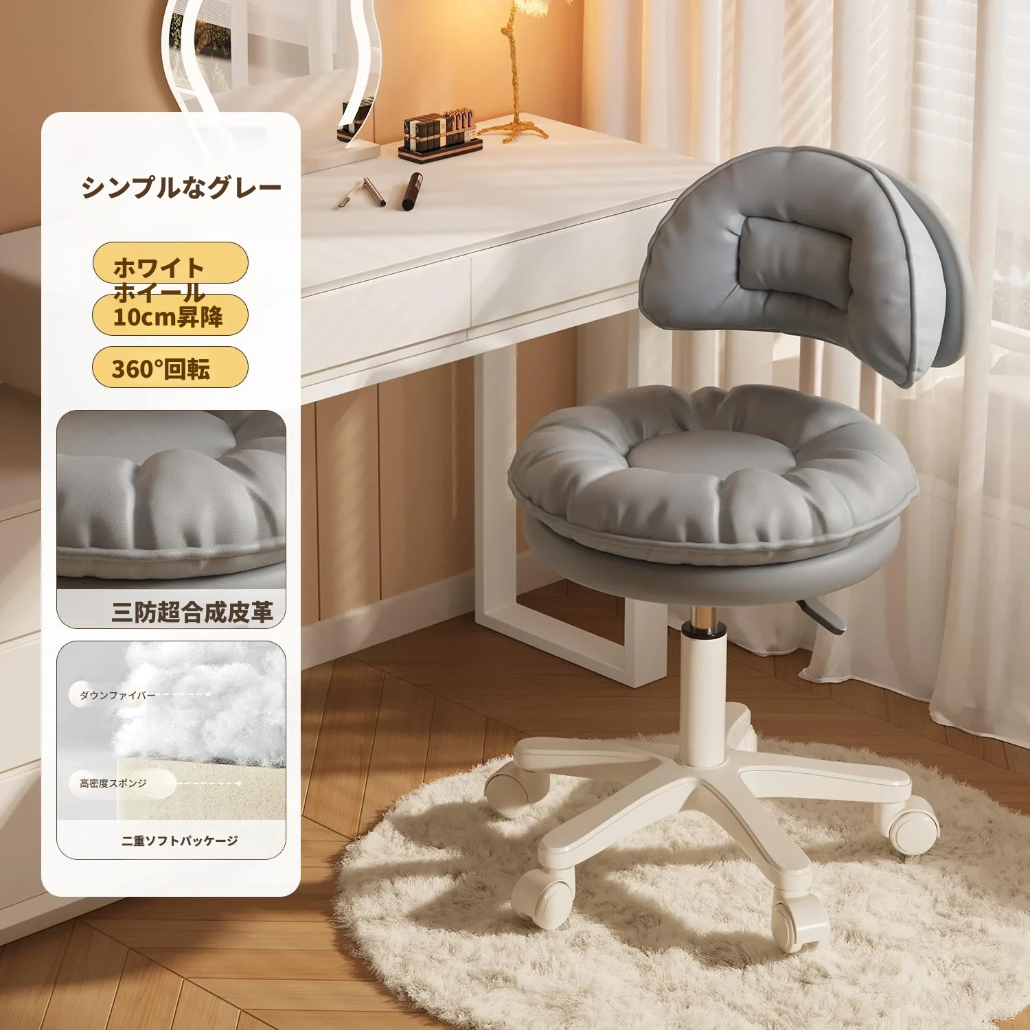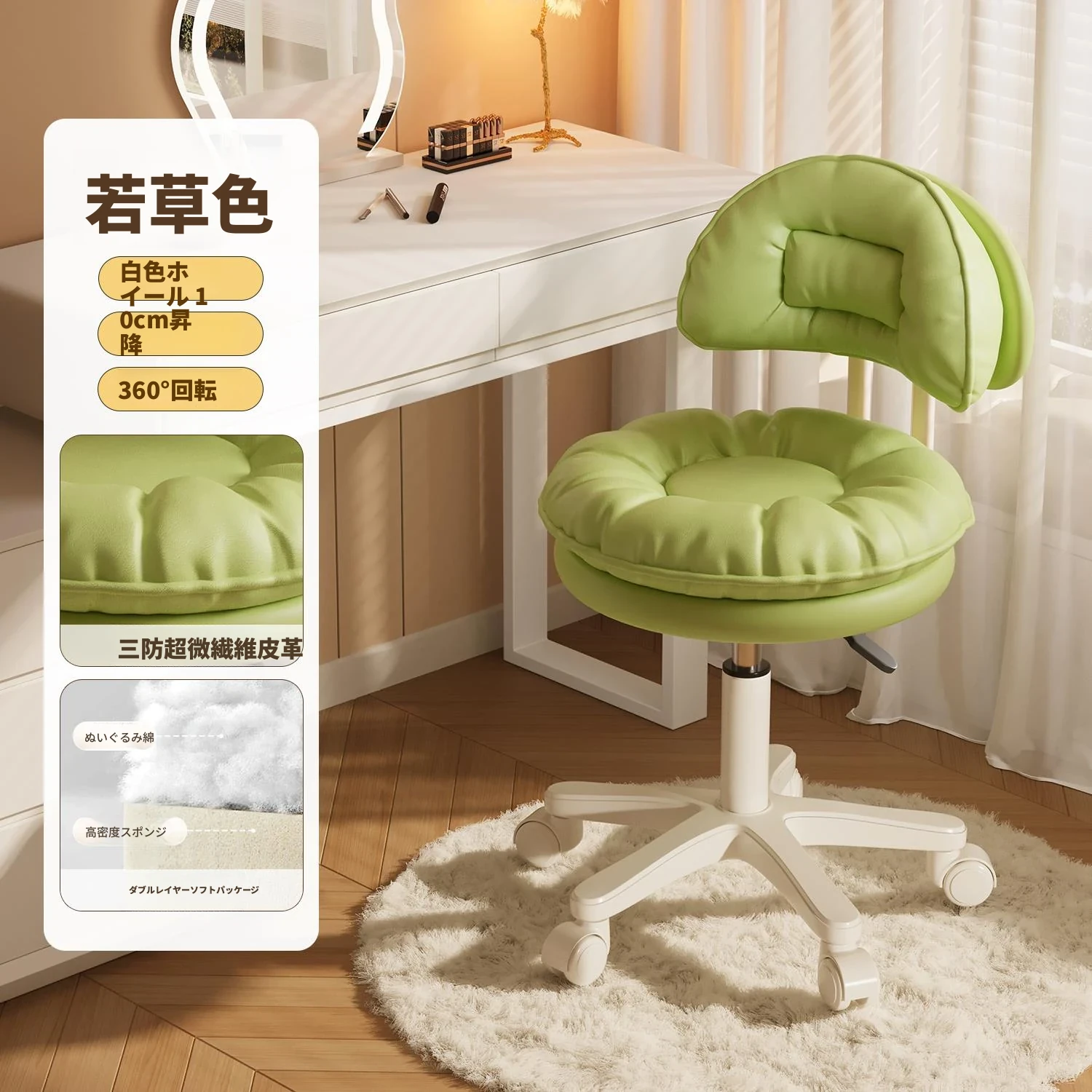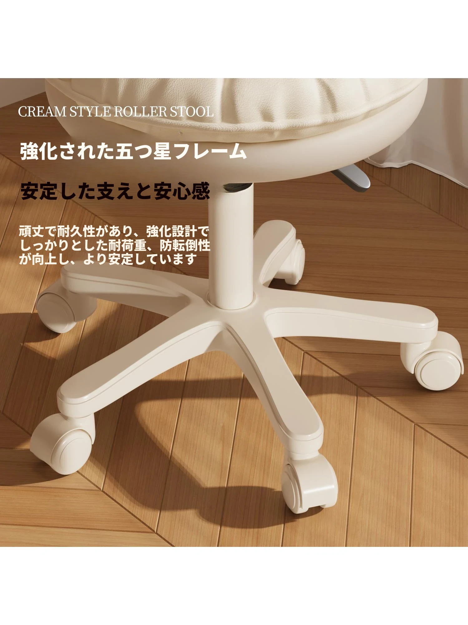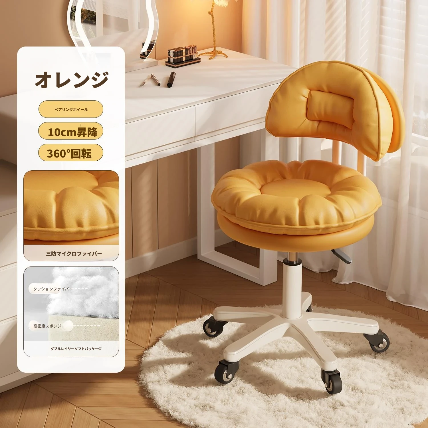 クリーム風のメイクアップチェア|女性にぴったりの昇降式デスクチェア|化粧台やネイルサロンに最適なリラックスチェア|おしゃれで快適な寝室用椅子!