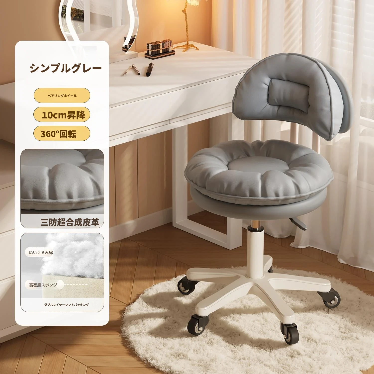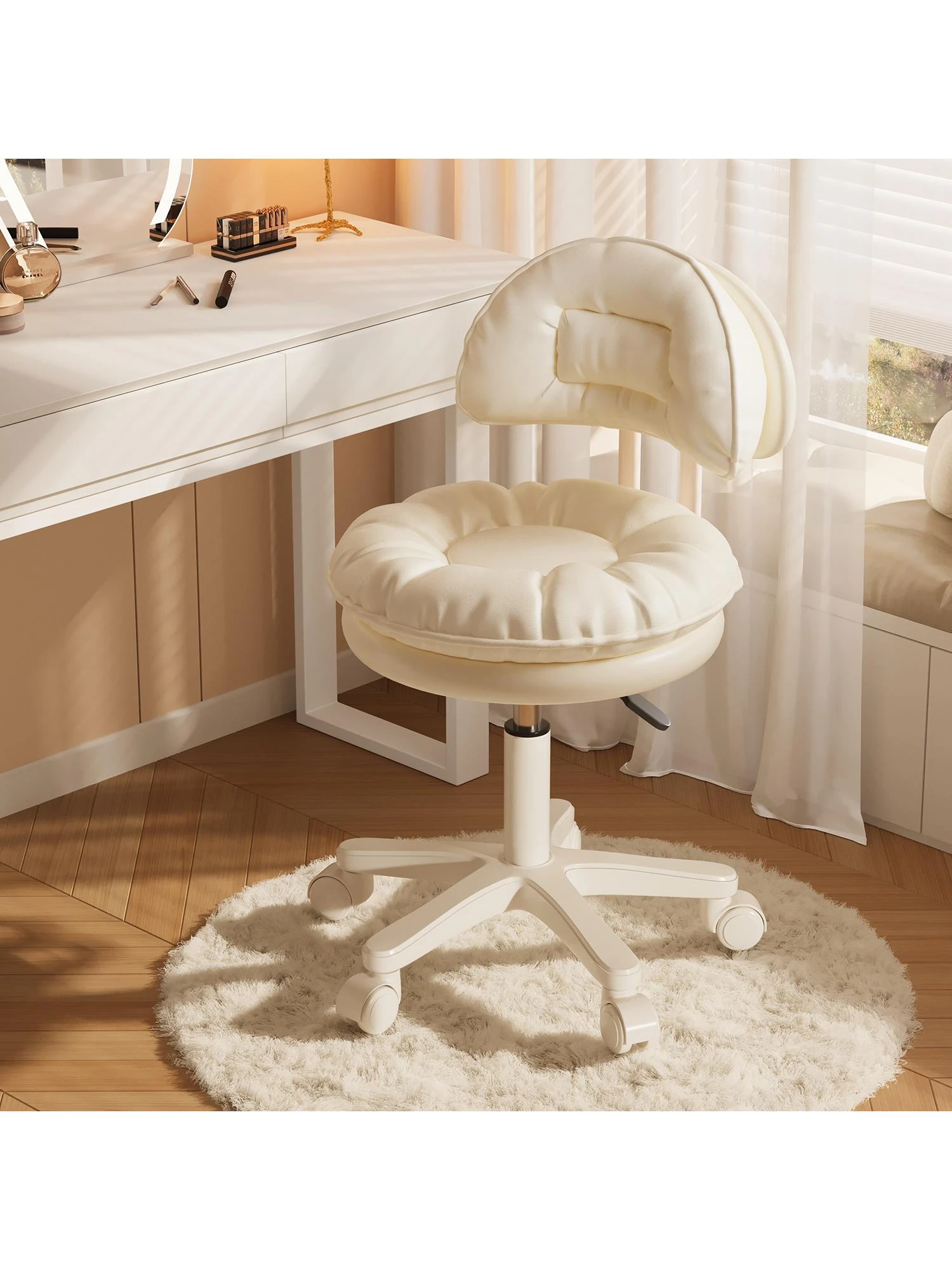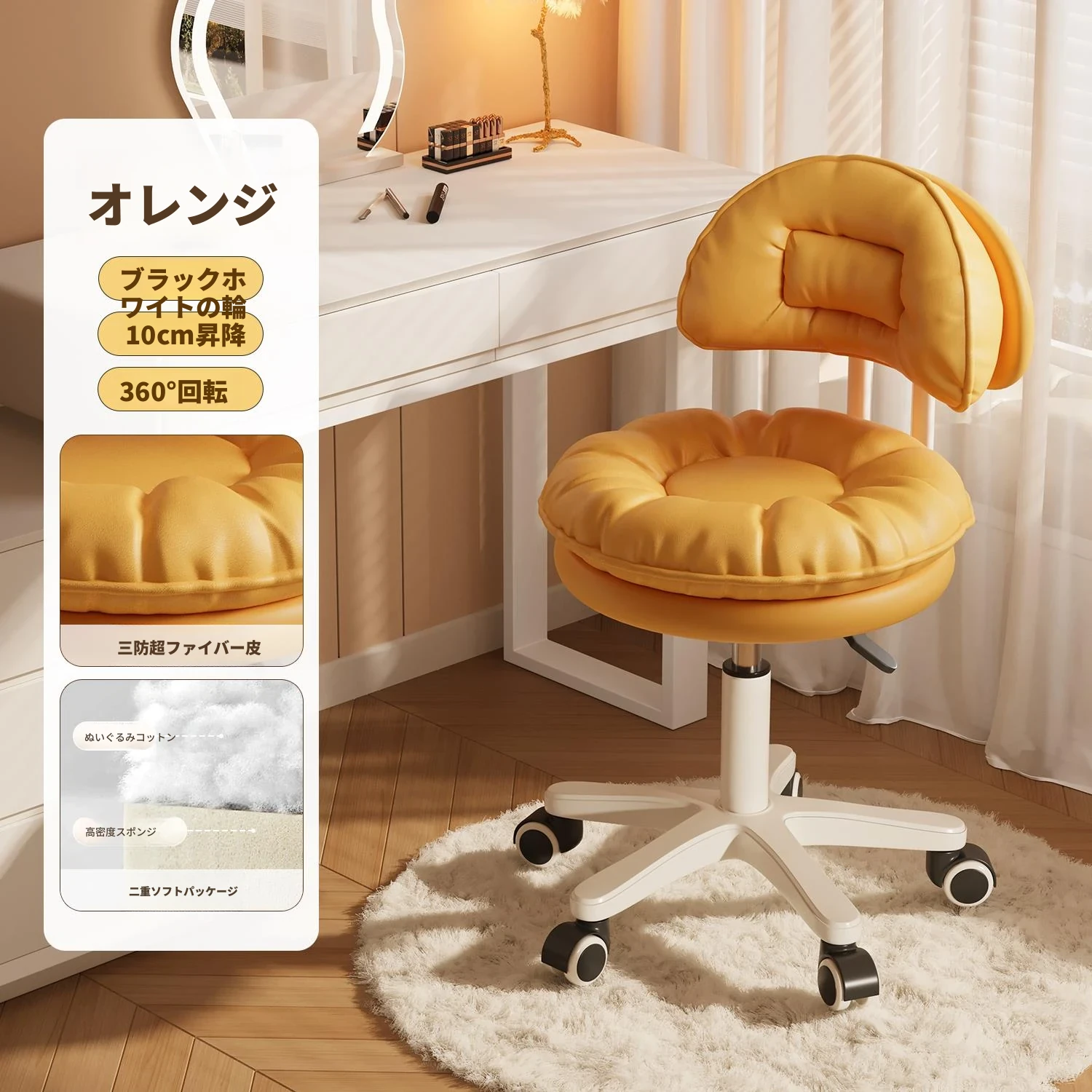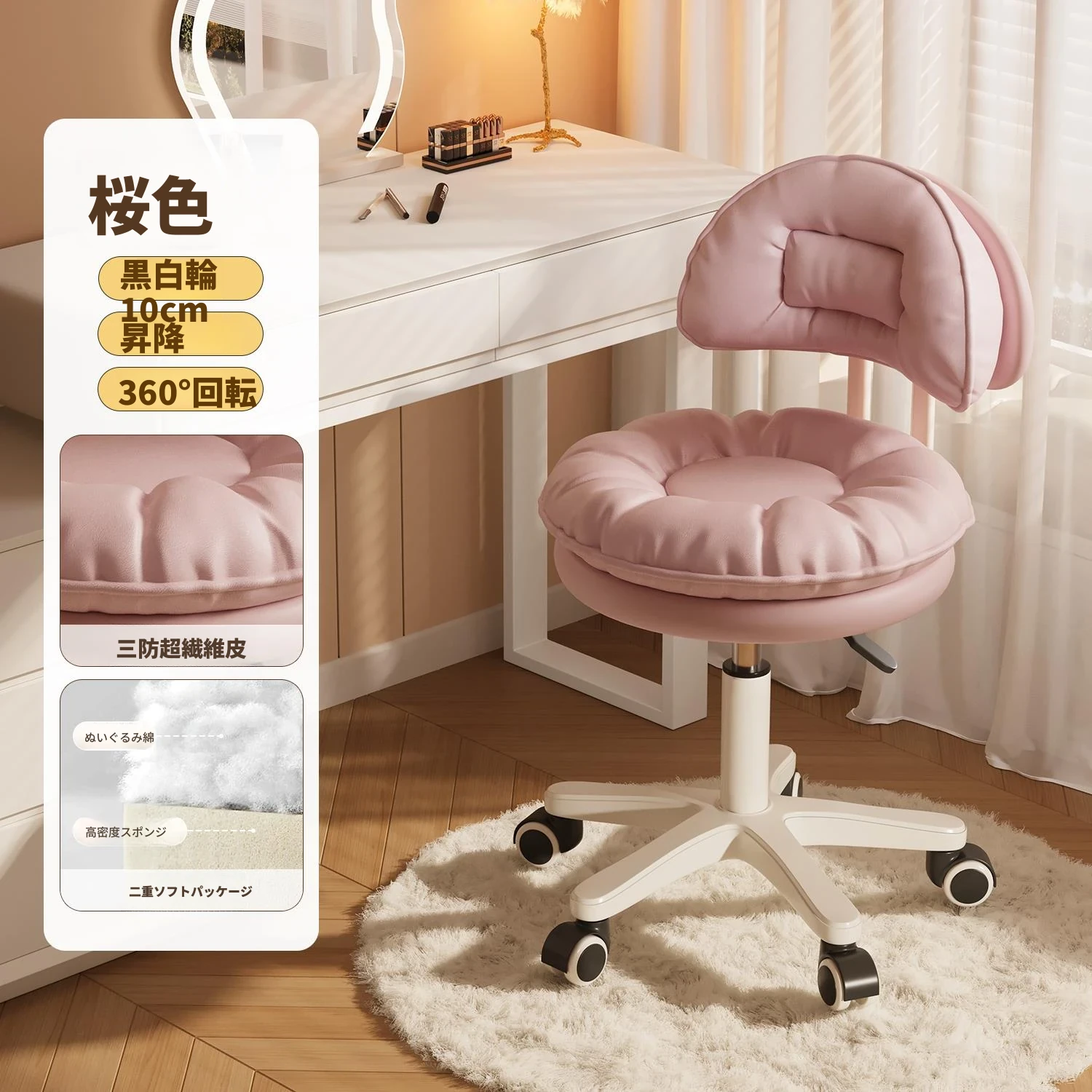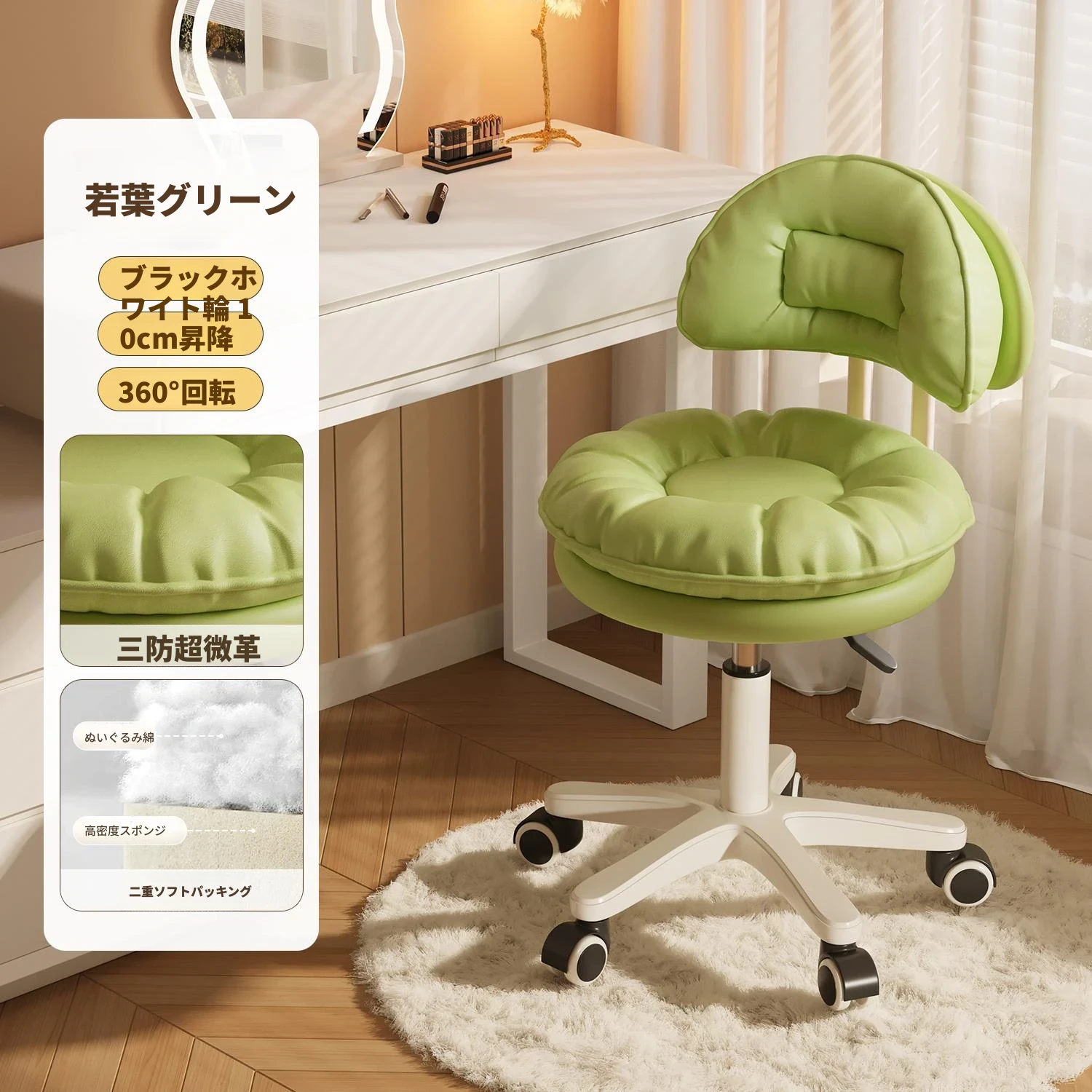クリーム風のメイクアップチェア|女性にぴったりの昇降式デスクチェア|化粧台やネイルサロンに最適なリラックスチェア|おしゃれで快適な寝室用椅子!