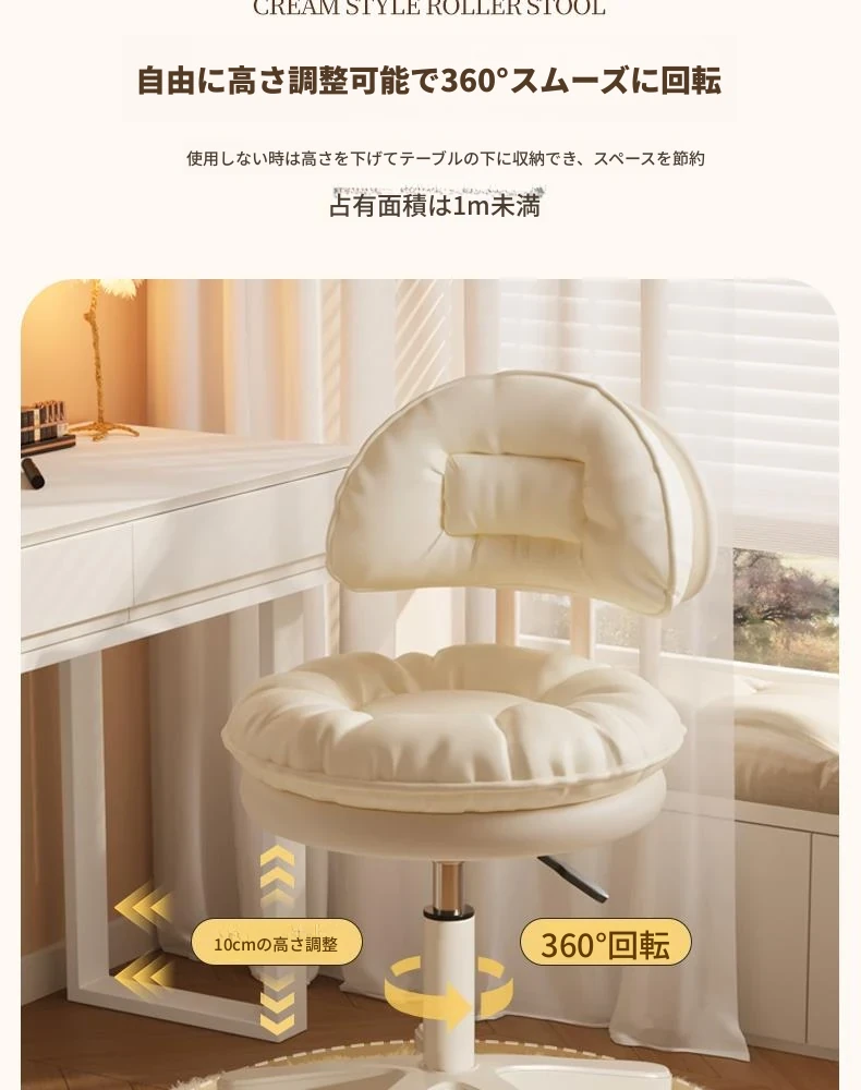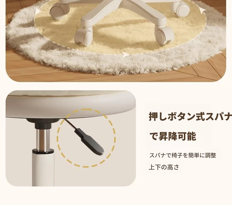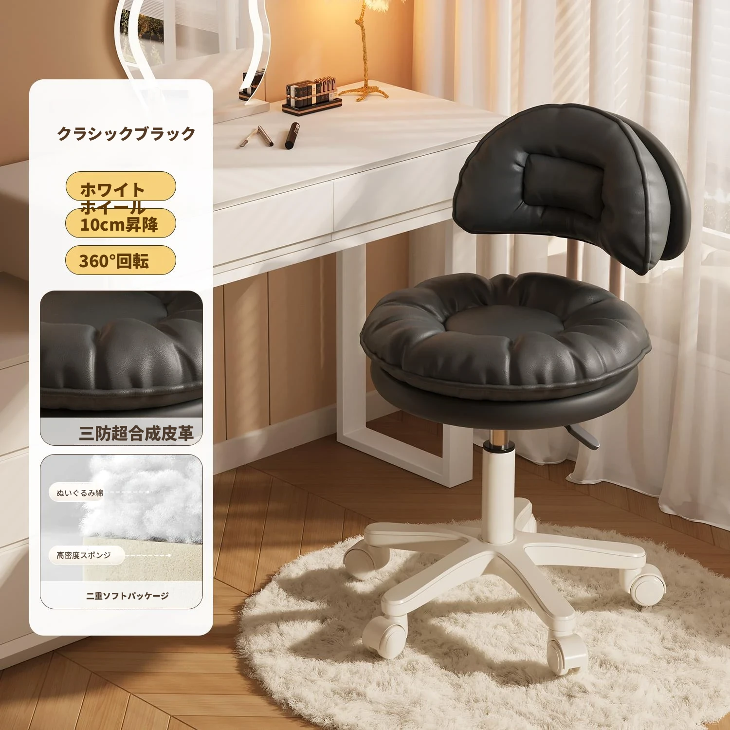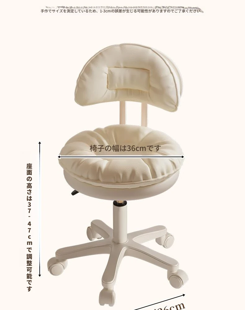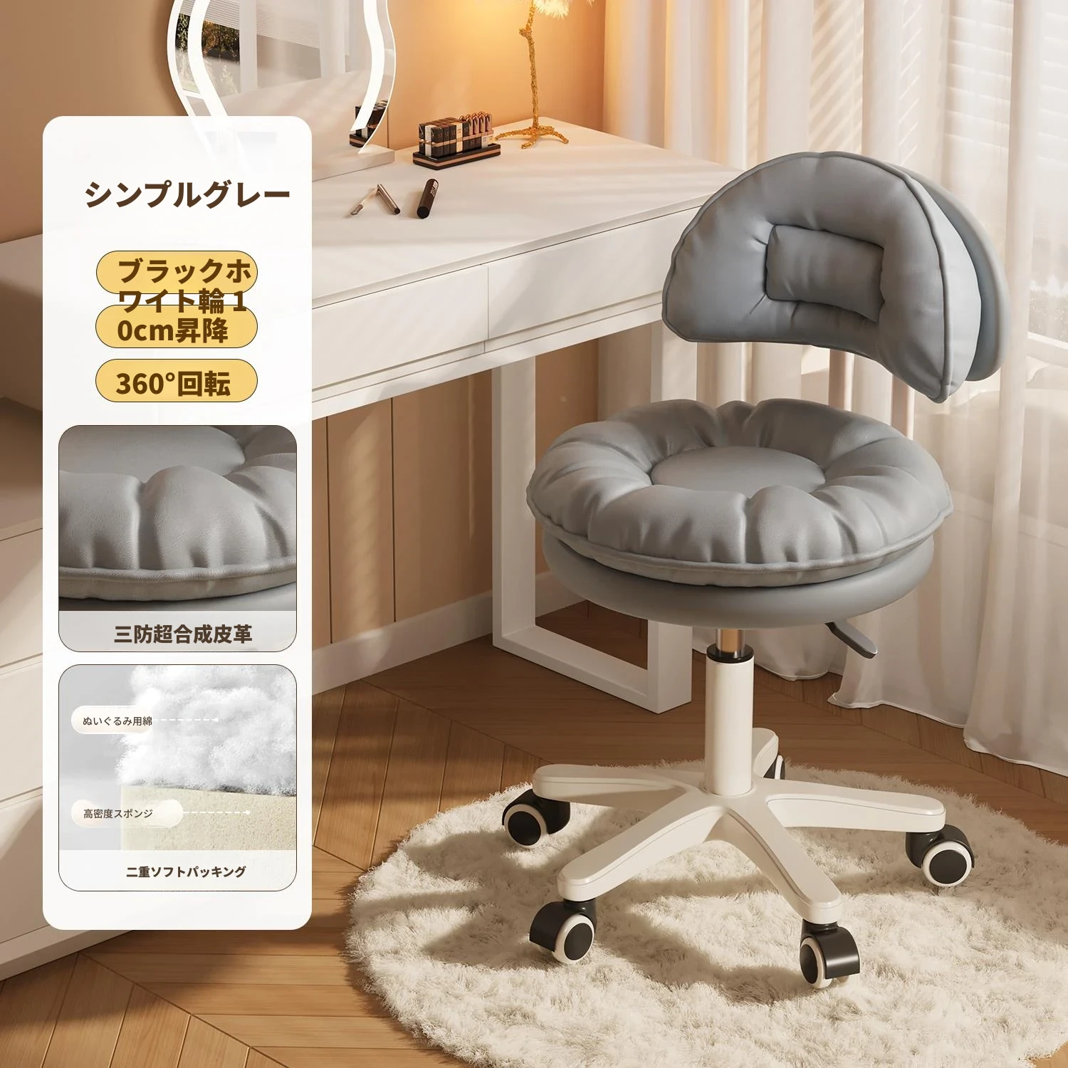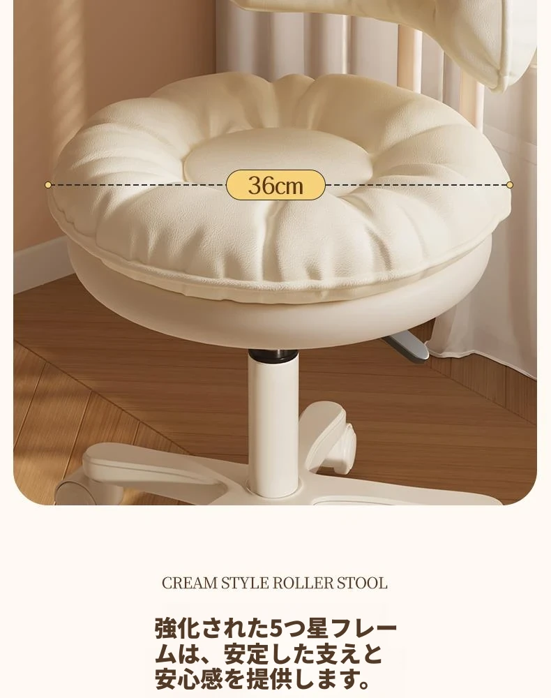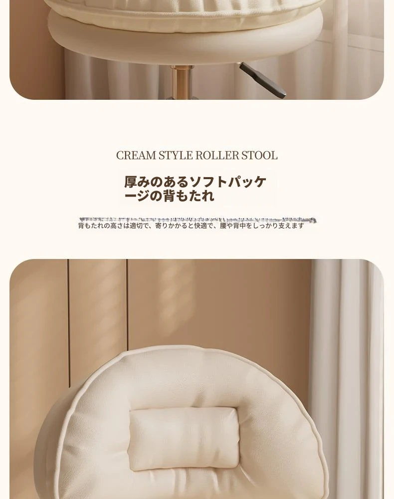クリーム風のメイクアップチェア|女性にぴったりの昇降式デスクチェア|化粧台やネイルサロンに最適なリラックスチェア|おしゃれで快適な寝室用椅子!