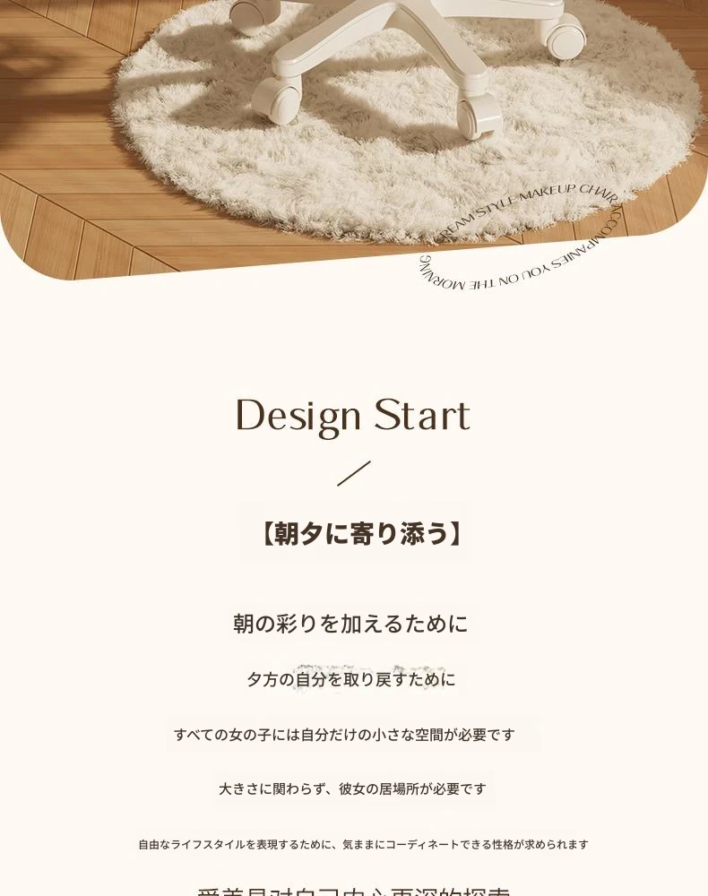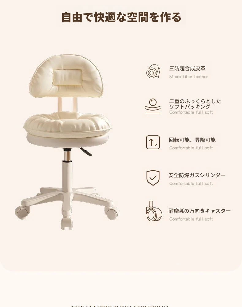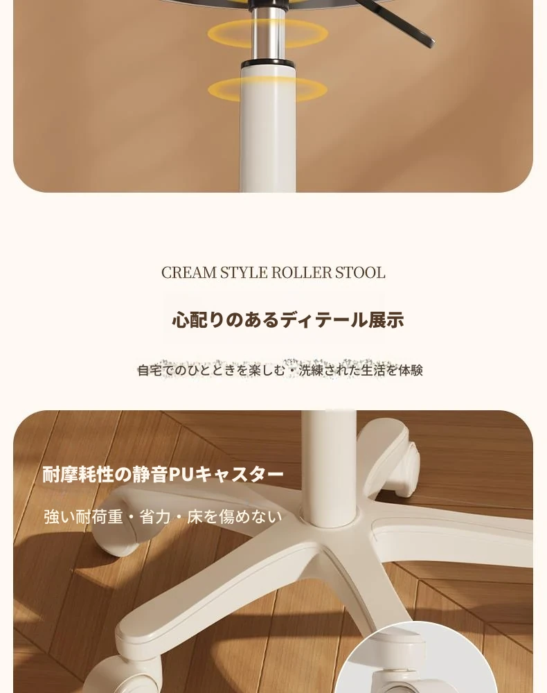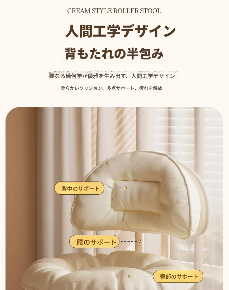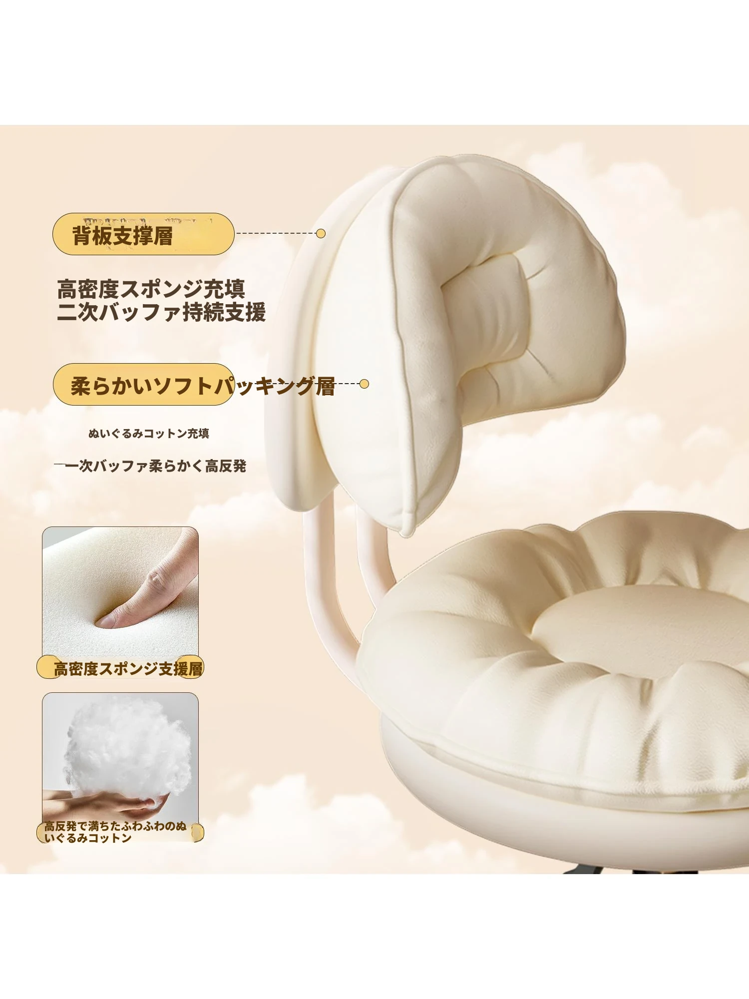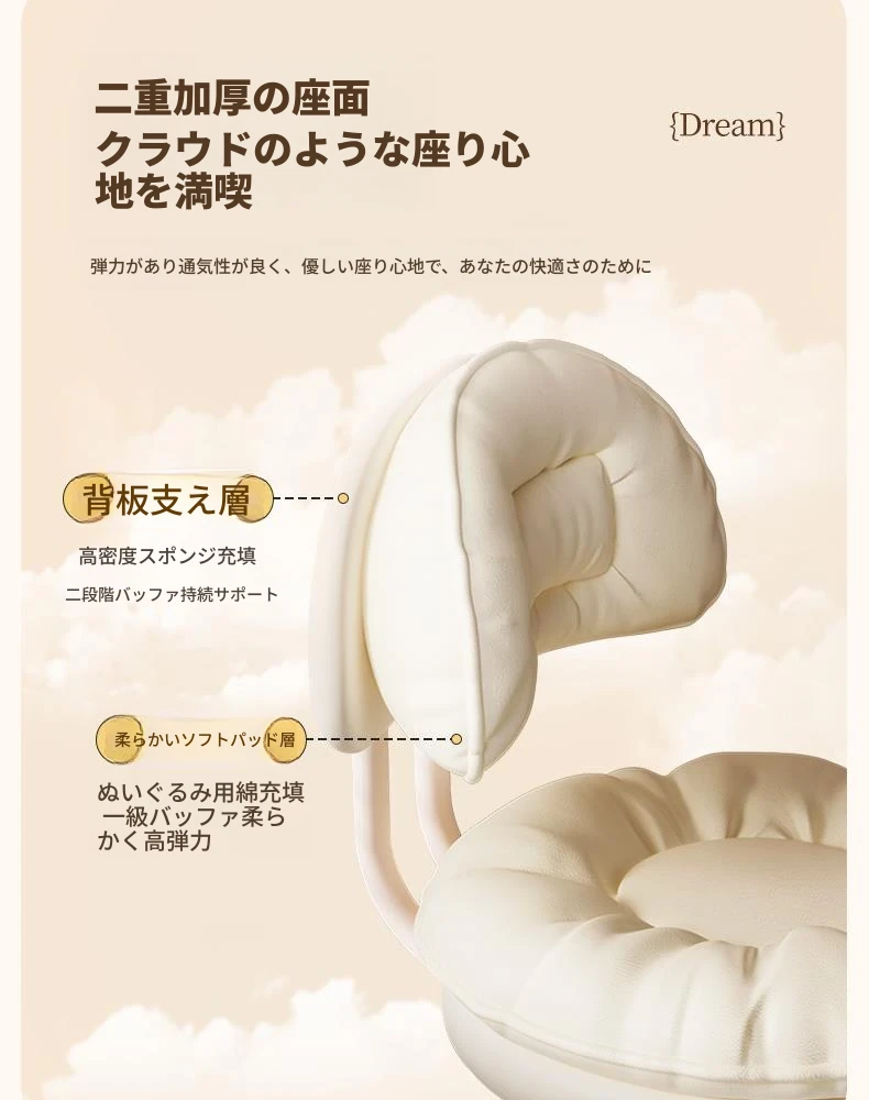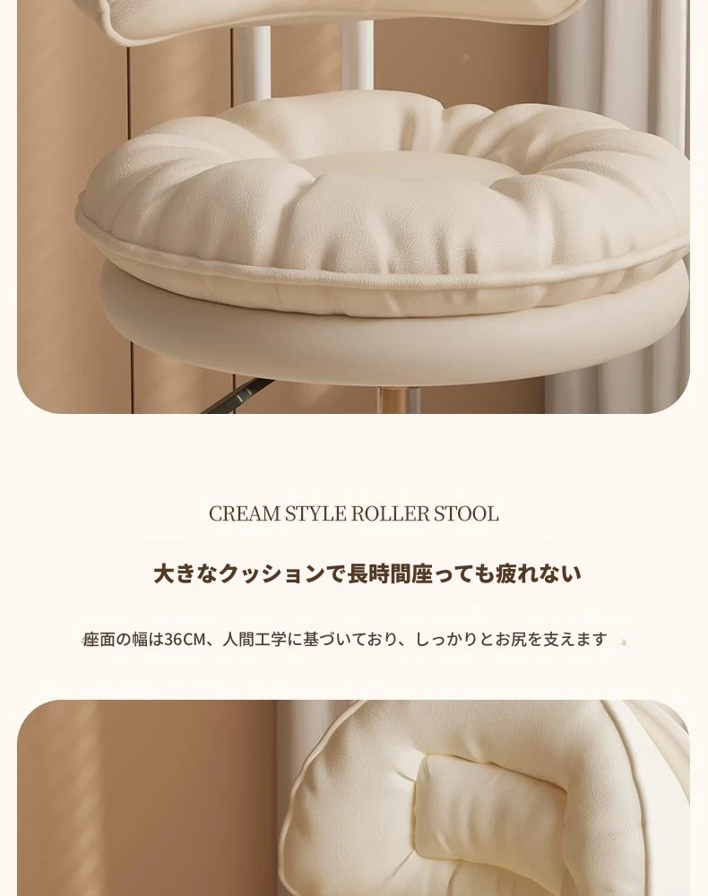 クリーム風のメイクアップチェア|女性にぴったりの昇降式デスクチェア|化粧台やネイルサロンに最適なリラックスチェア|おしゃれで快適な寝室用椅子!