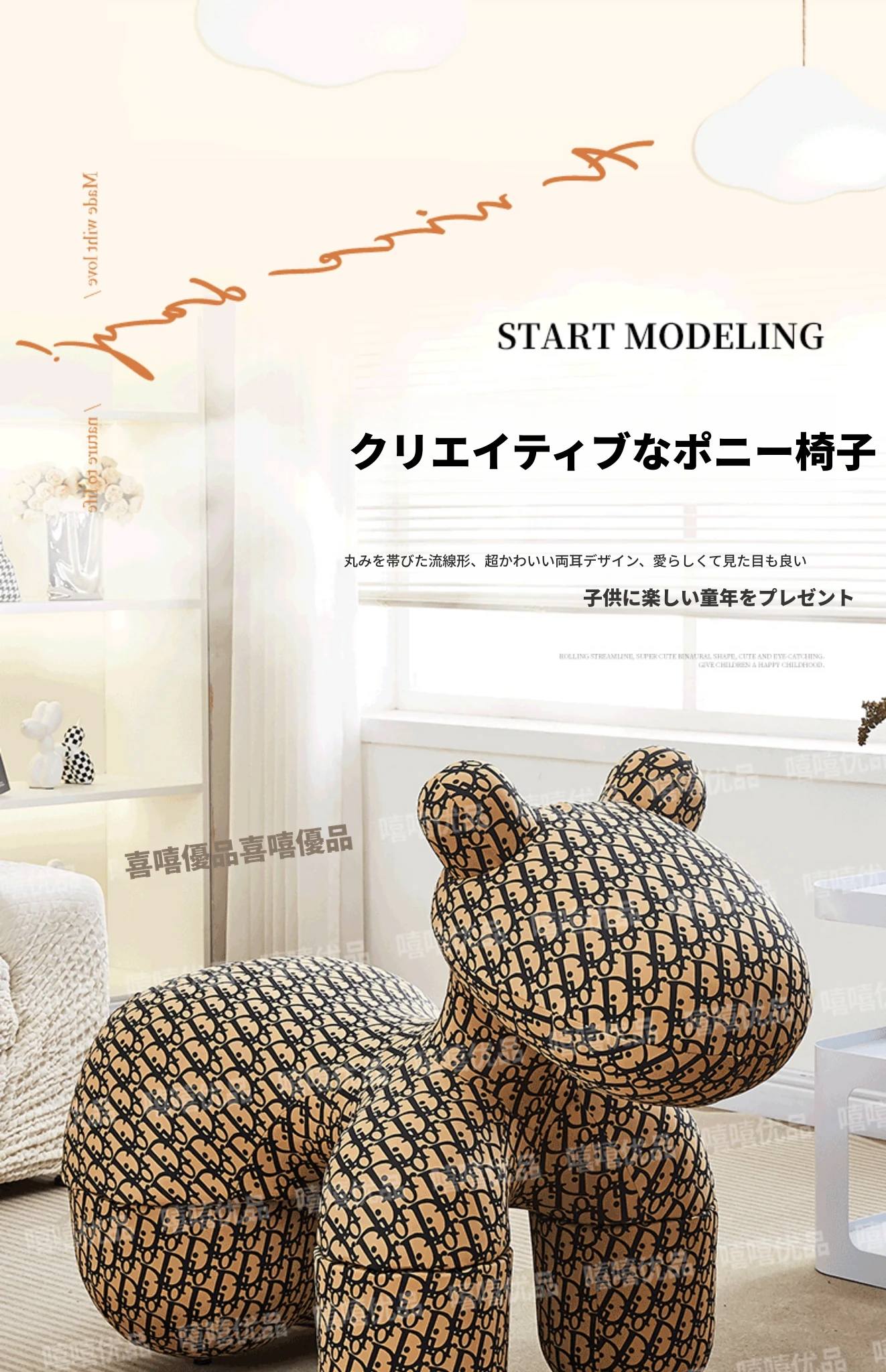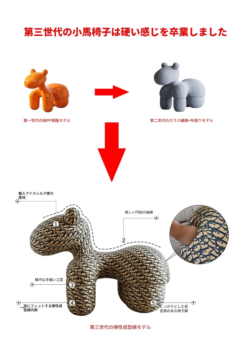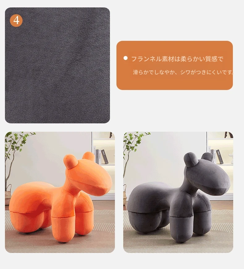 キュートな馬の子供用チェア!おしゃれでユニークな動物デザインのソファは、リビングのアクセントにもぴったり。シンプルでモダン、子供たちの遊び場やお部屋に最適なアイテムです。