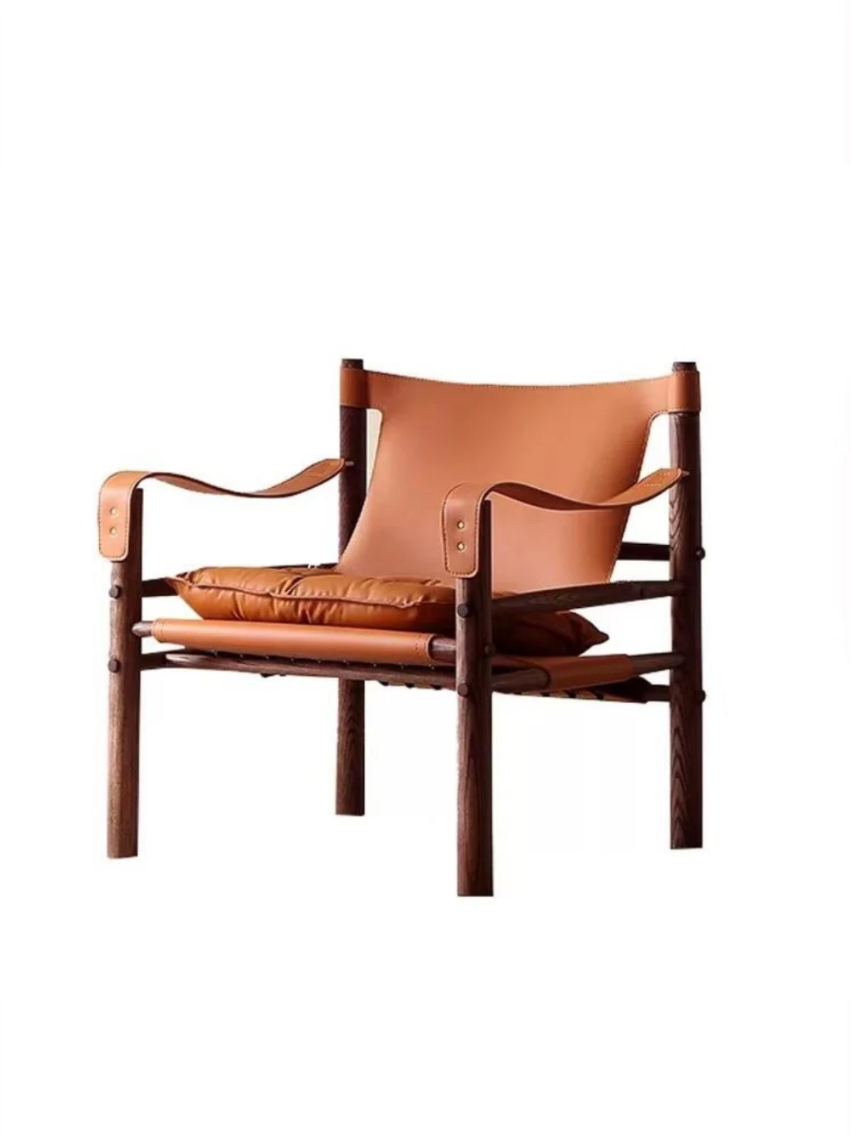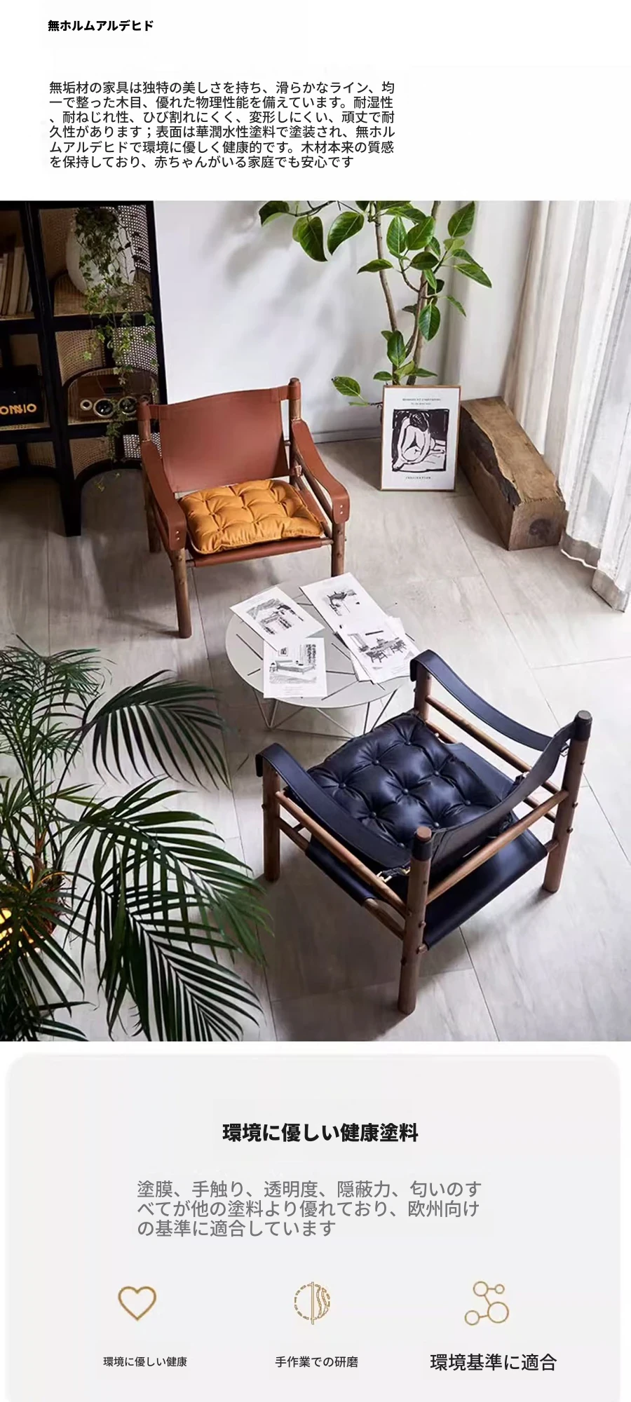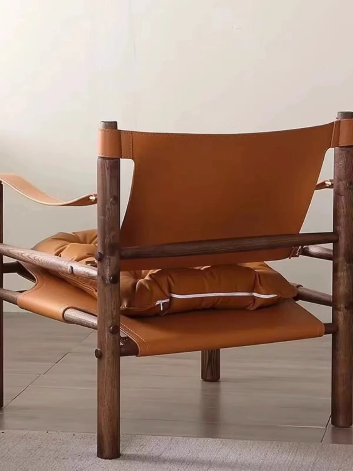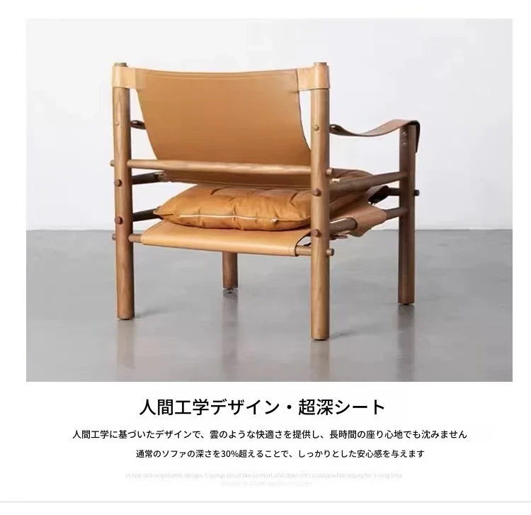北欧デンマークデザインのウッド一人掛けレトロソファチェア - サドルレザー仕立てで、リビングルームにぴったりの心地よい休息空間を提供します。スタイリッシュで快適なデザインで、あなたのインテリアを華やかに演出!