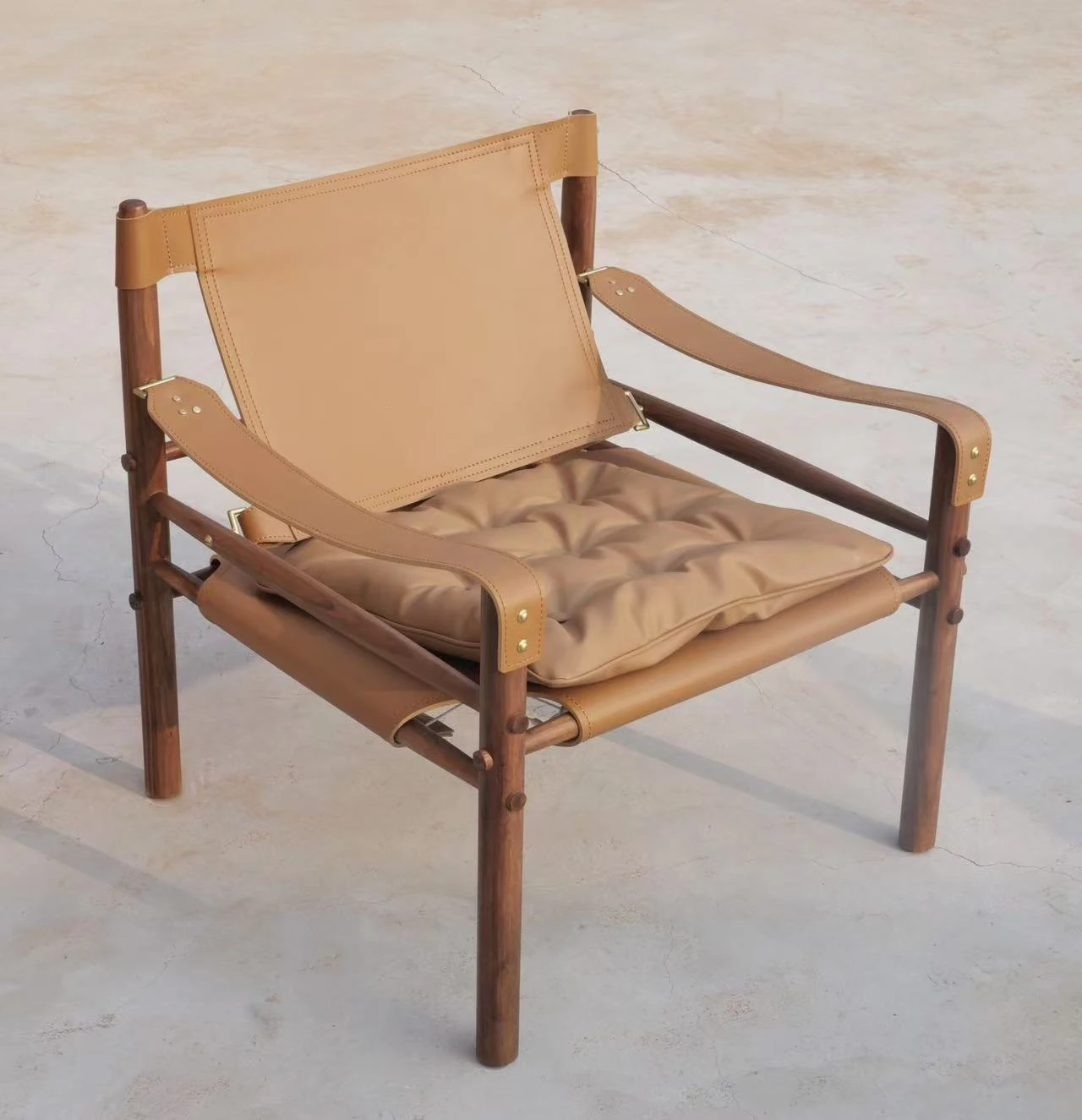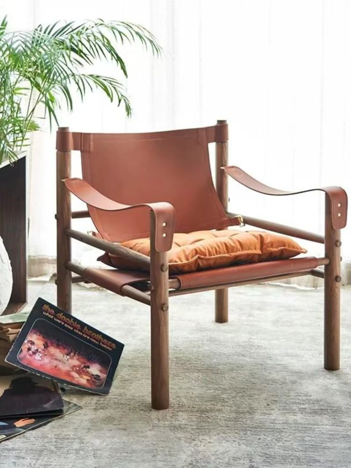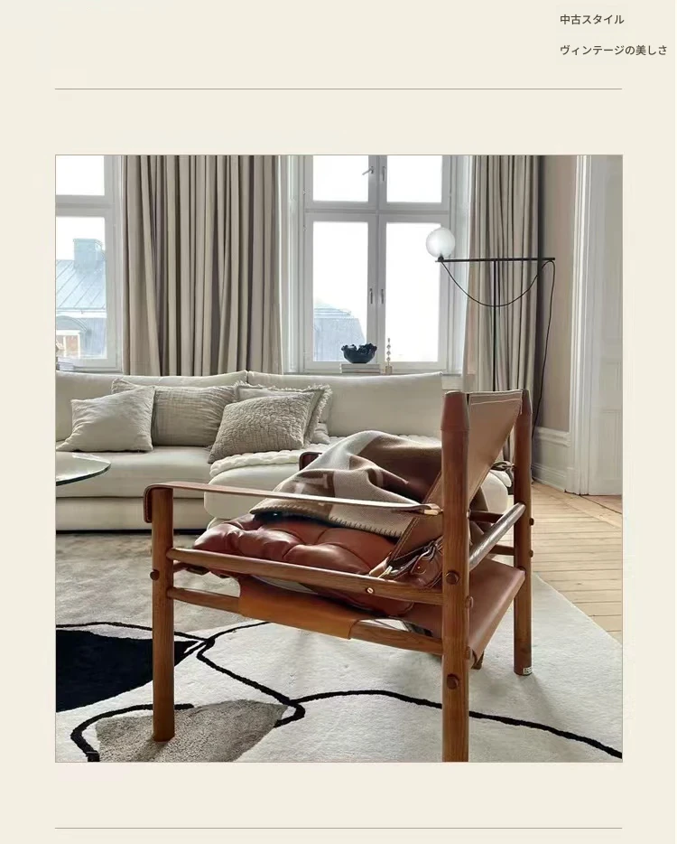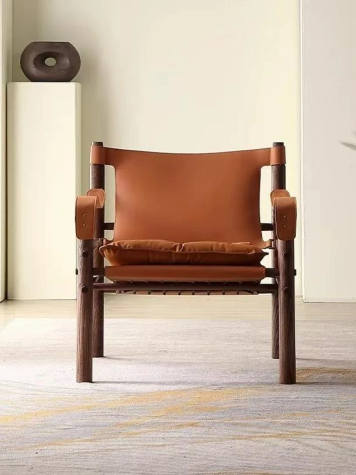 北欧デンマークデザインのウッド一人掛けレトロソファチェア - サドルレザー仕立てで、リビングルームにぴったりの心地よい休息空間を提供します。スタイリッシュで快適なデザインで、あなたのインテリアを華やかに演出!