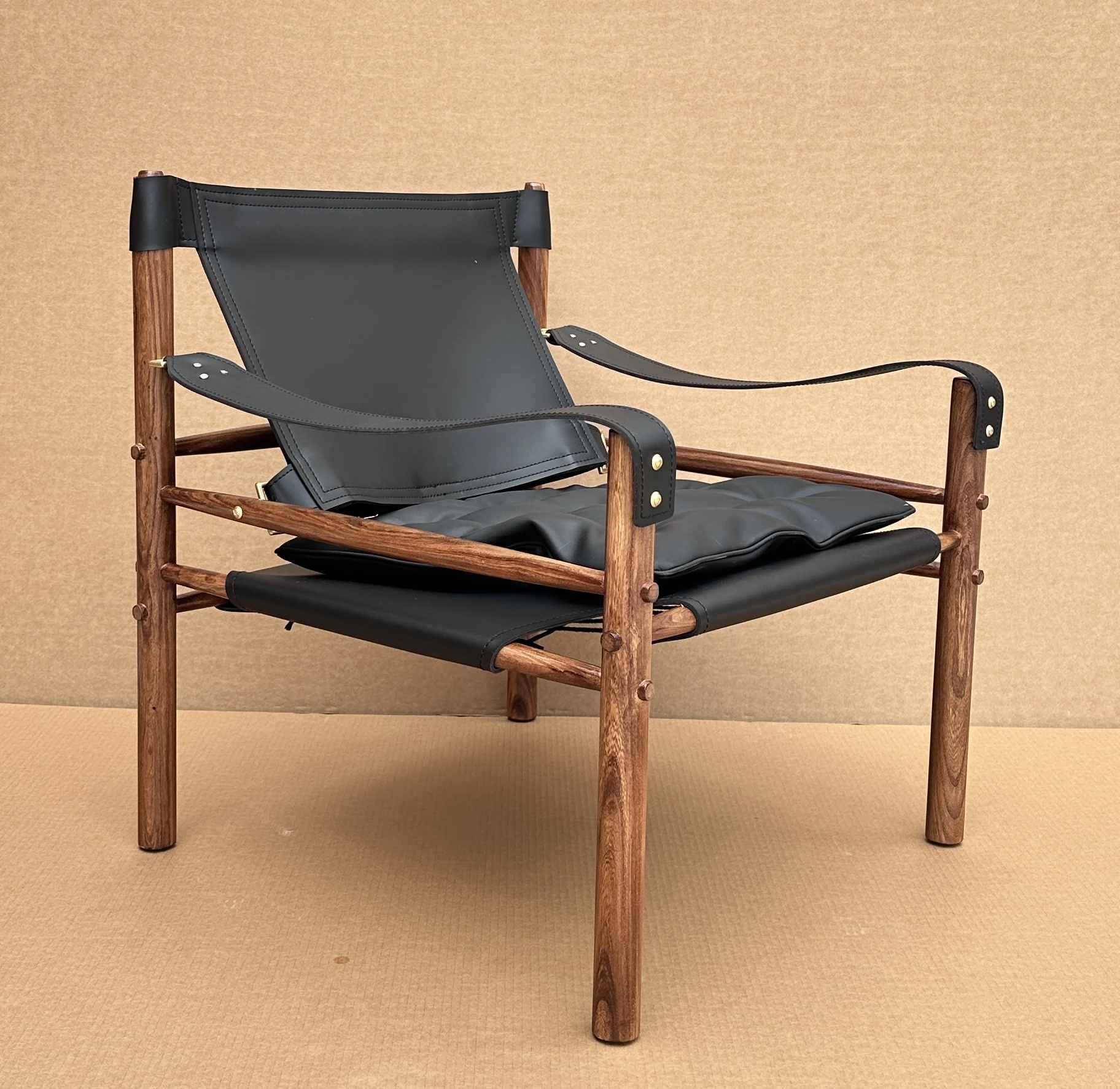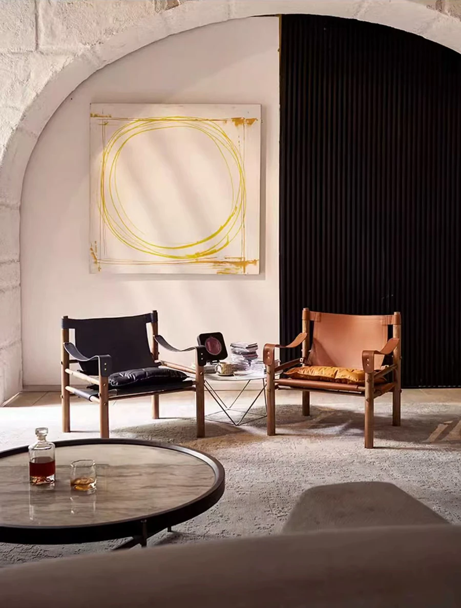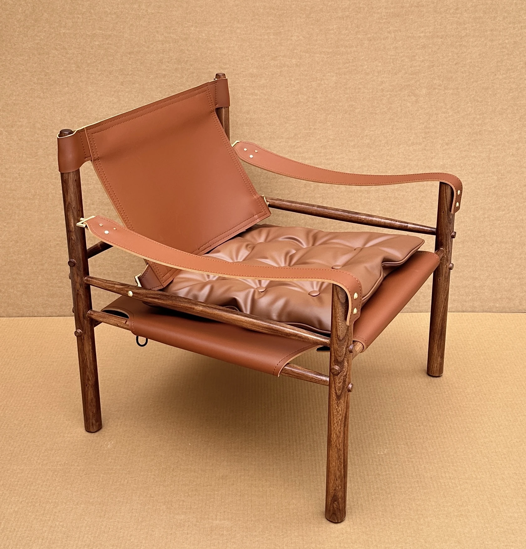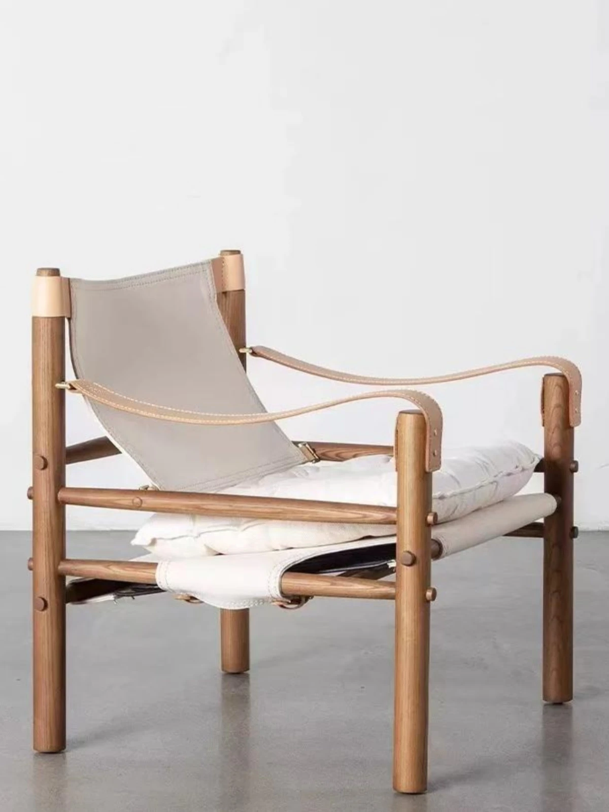 北欧デンマークデザインのウッド一人掛けレトロソファチェア - サドルレザー仕立てで、リビングルームにぴったりの心地よい休息空間を提供します。スタイリッシュで快適なデザインで、あなたのインテリアを華やかに演出!