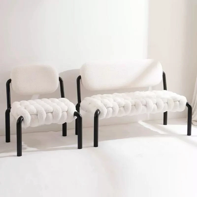 デザイナークリーム風ソファチェア|一人用・二人用コンビネーション|ラウンジ・受付用に最適|背もたれ付き・靴を履く時に便利な長椅子|おしゃれで快適な空間を演出します!