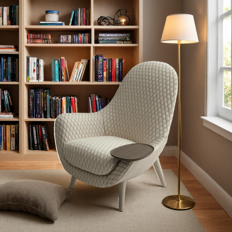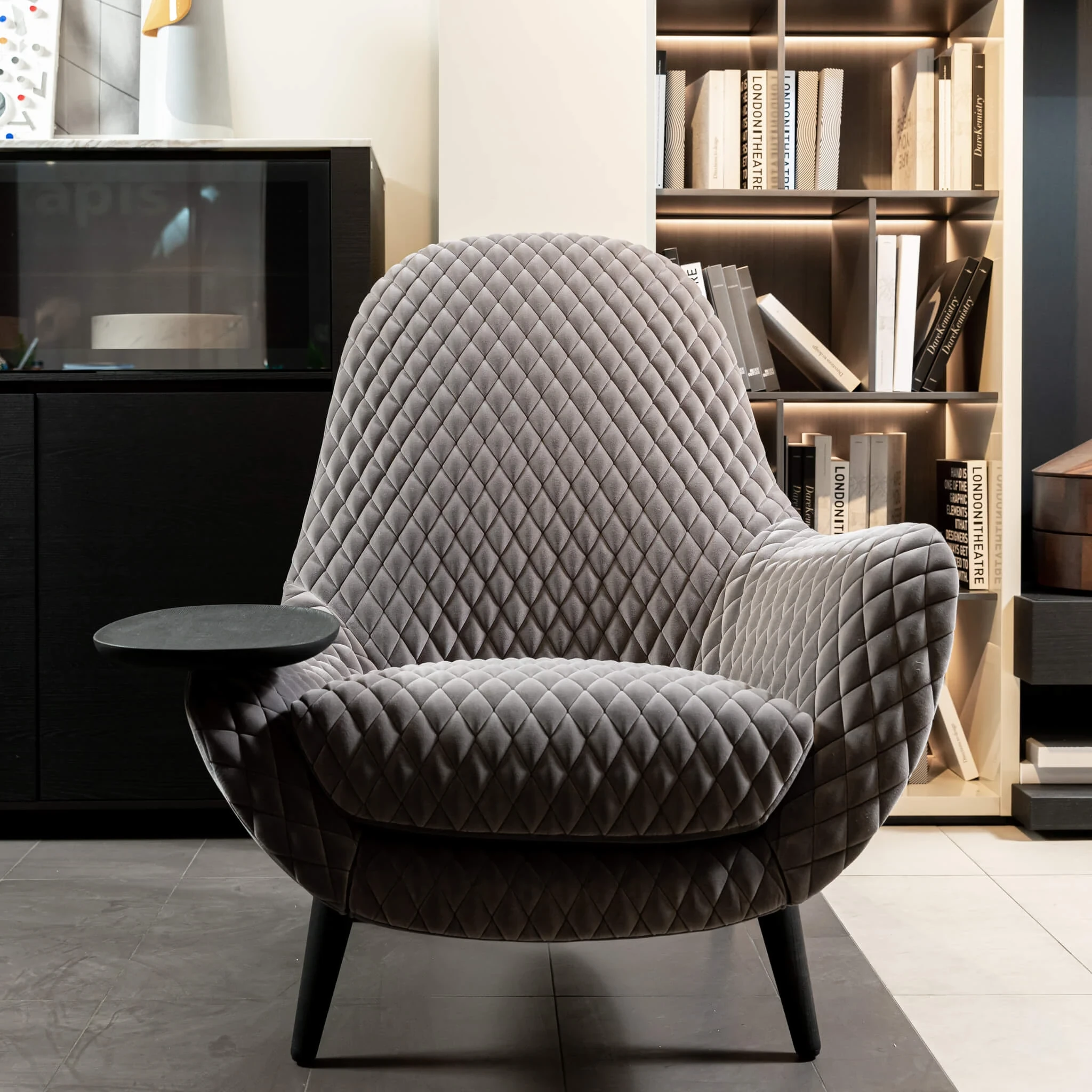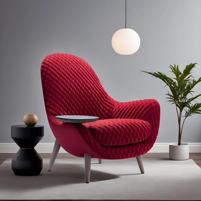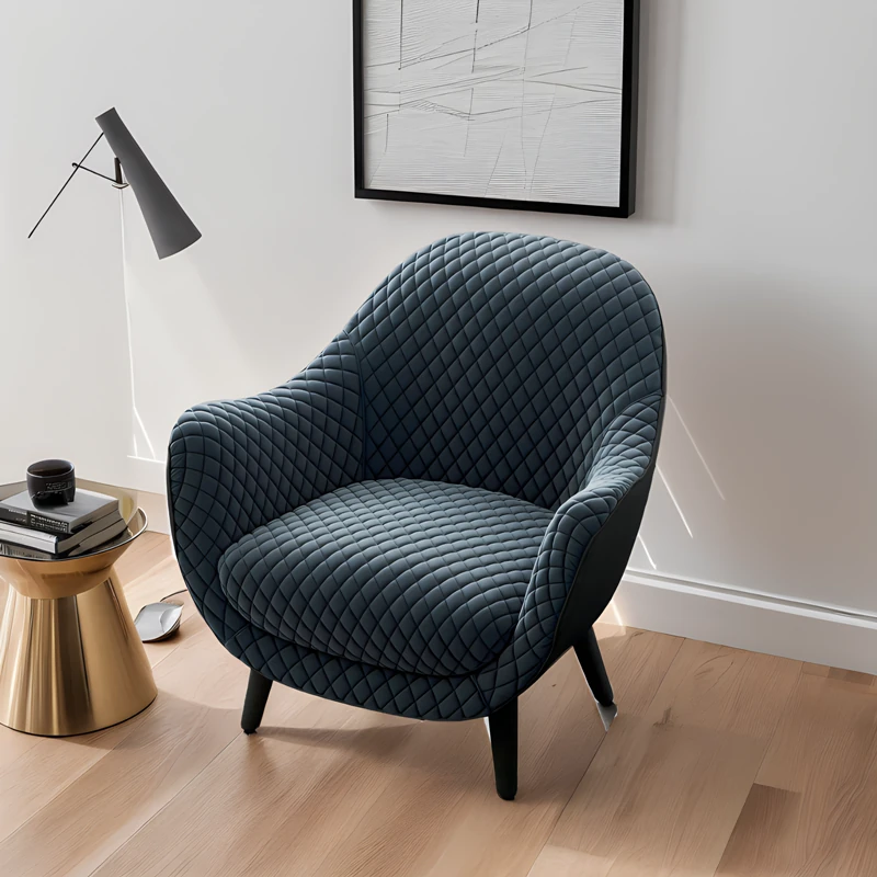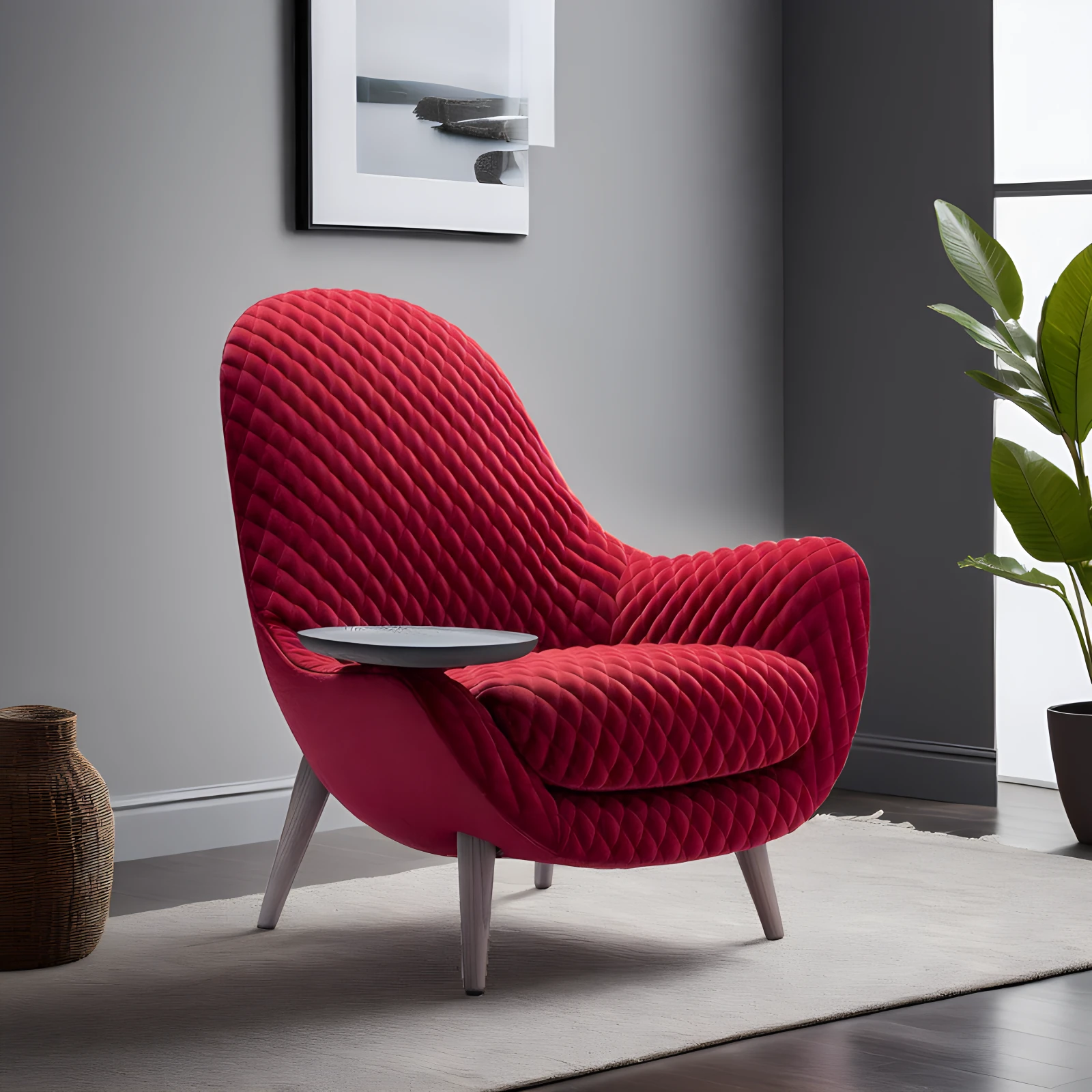デザイナーのクリエイティブなリクライニングチェア - モダンでラグジュアリーな一人掛けソファ。自宅でくつろげる低背のアームチェア。スタイリッシュなデザインで、リラックスした時間を提供します。