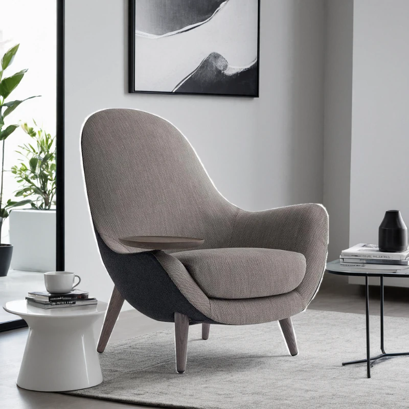 麻灰色(左/右肘掛けに無垢材トレイ付き)