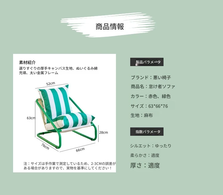 一人用リラックスソファ!小スペースにもぴったりな快適な「怠け者の椅子」!リビングやバルコニーでくつろぎのひとときを。背もたれ付きで、心地よい休息を提供します。