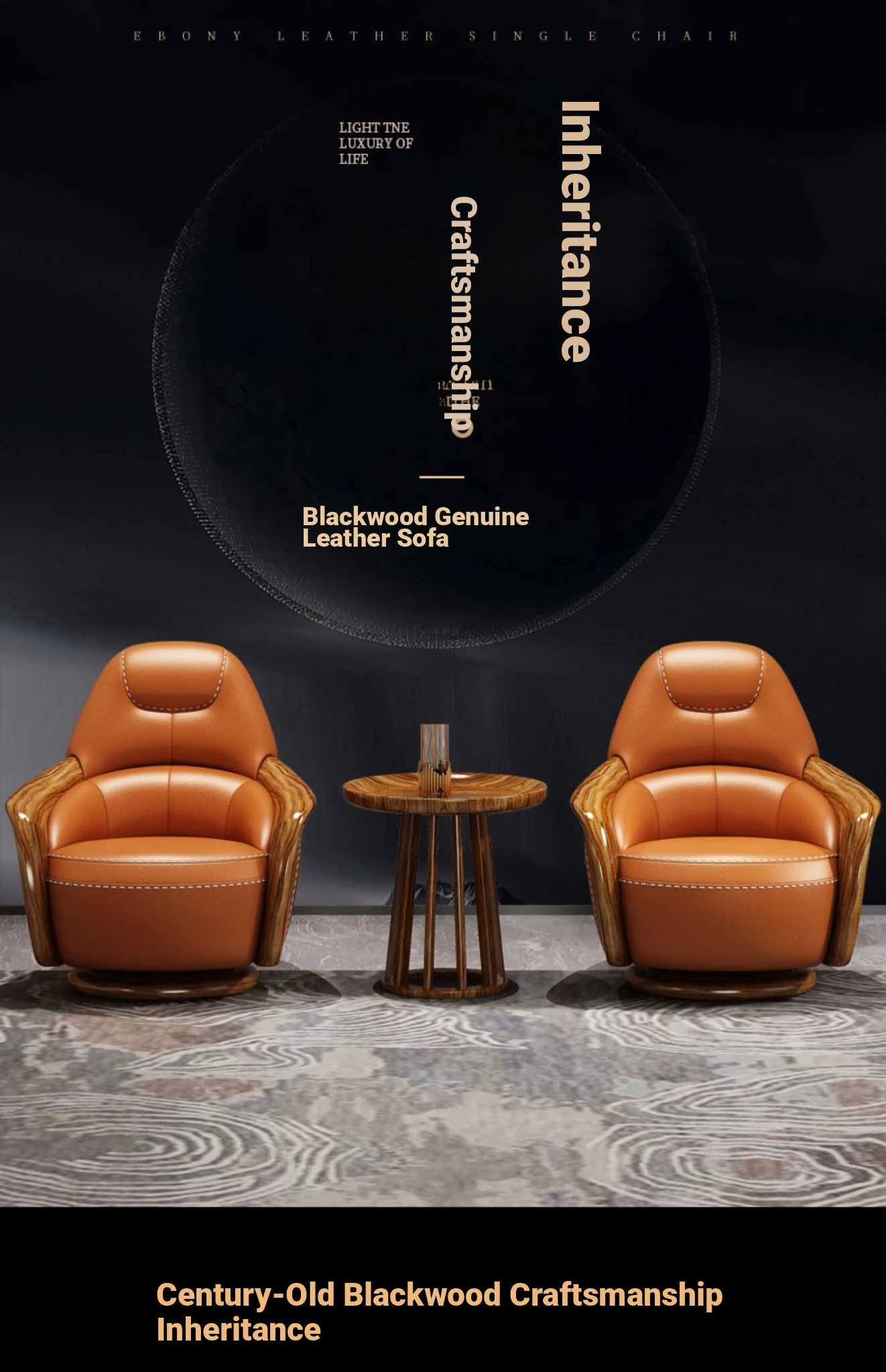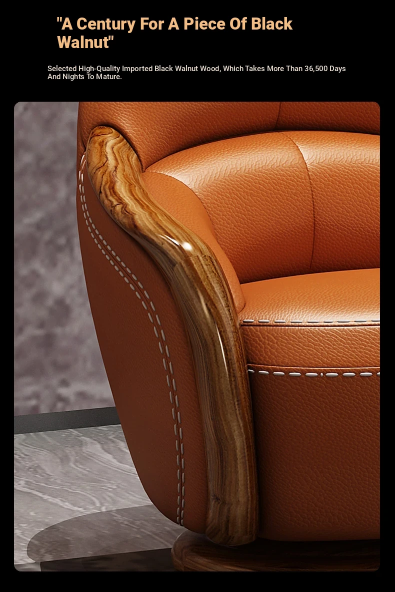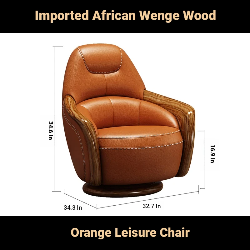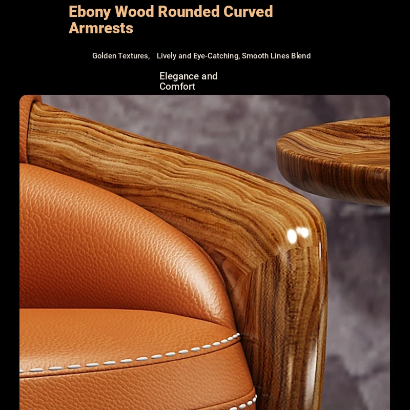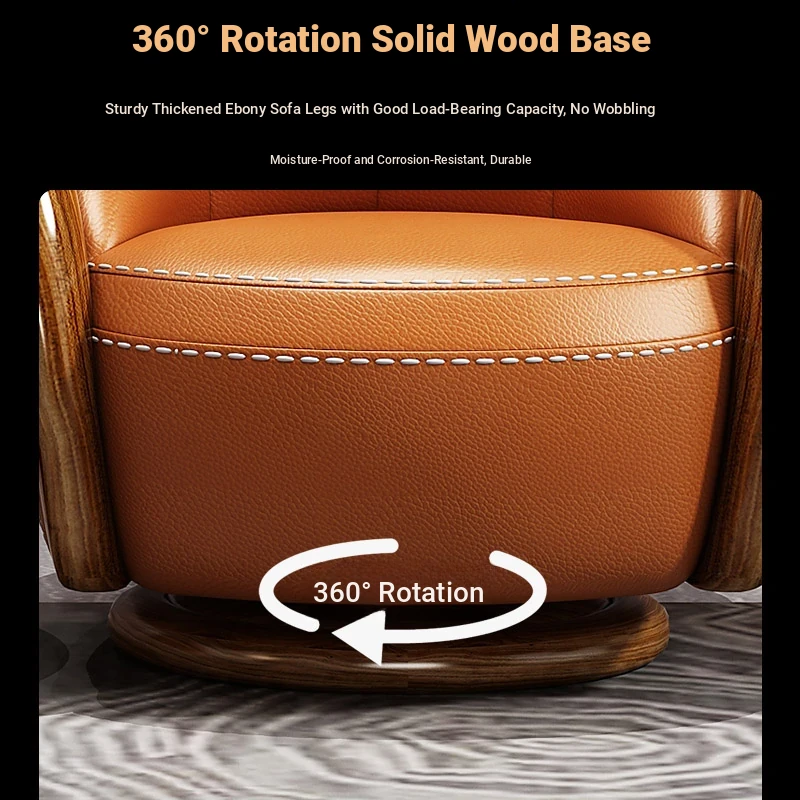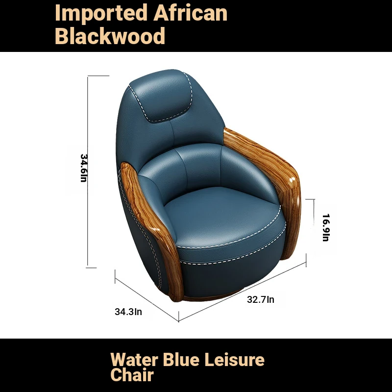 Elegant Blackwood Leisure Chair - Single Seat Negotiation Chair with Solid Wood and First Layer Cowhide, Luxury New Chinese Style Genuine Leather Sofa and Swivel Chair