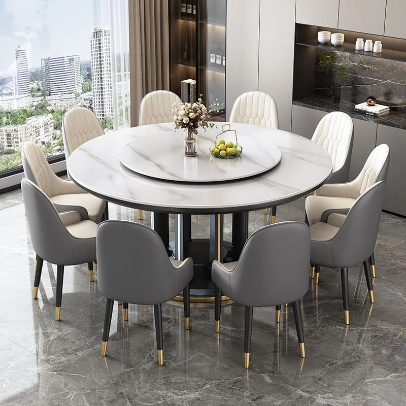 1.8メートルのダイニングテーブル+10椅子【埋め込み式岩板ターンテーブル付き】/エボニー色