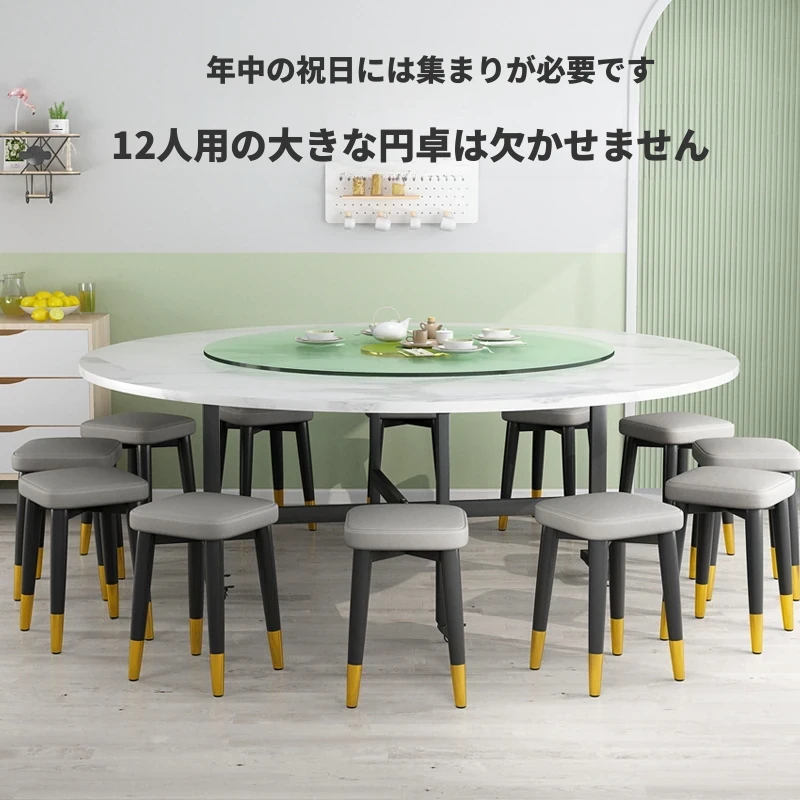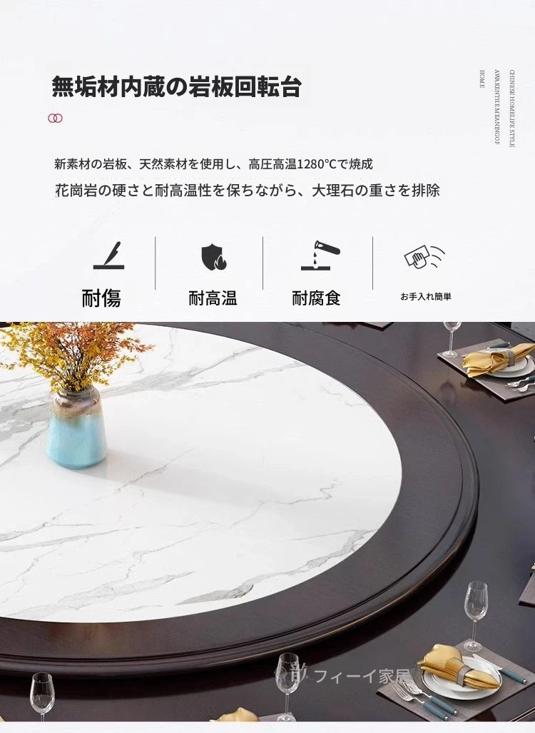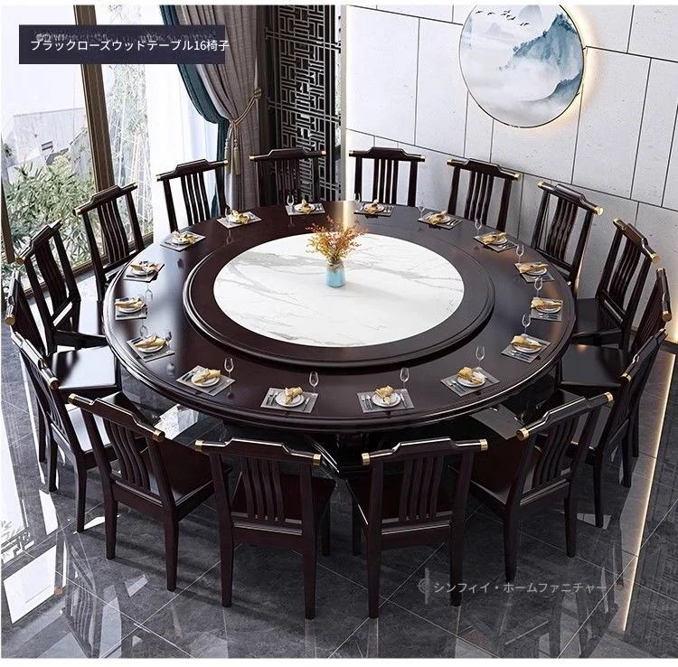 1.8メートルのダイニングテーブル+12椅子【埋め込み式岩板ターンテーブル付き】/エボニー色【電磁調理器タイプ】