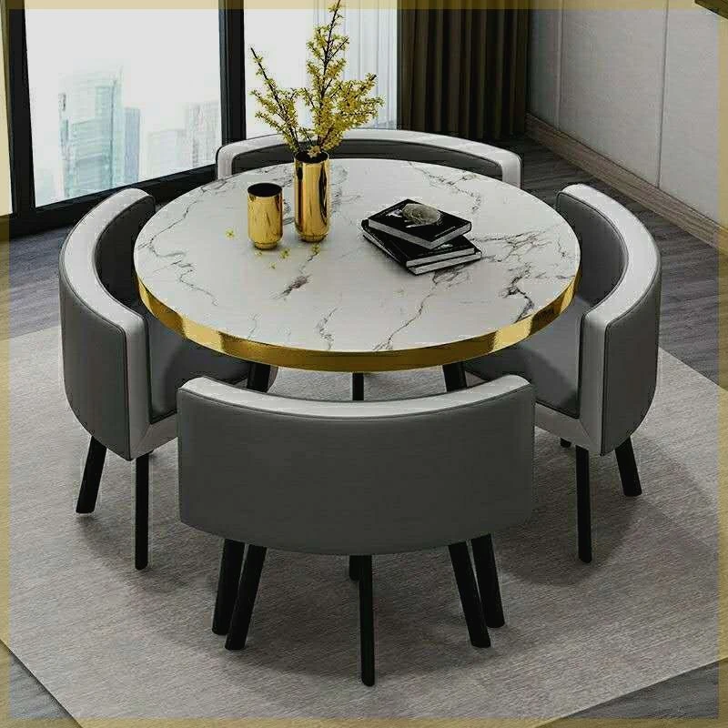 1.2メートルのダイニングテーブル+6椅子【埋め込み式岩板ターンテーブル付き】/ウォールナット色