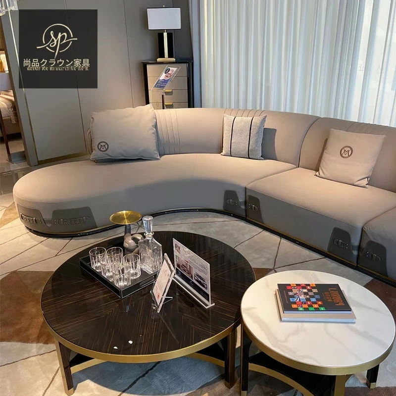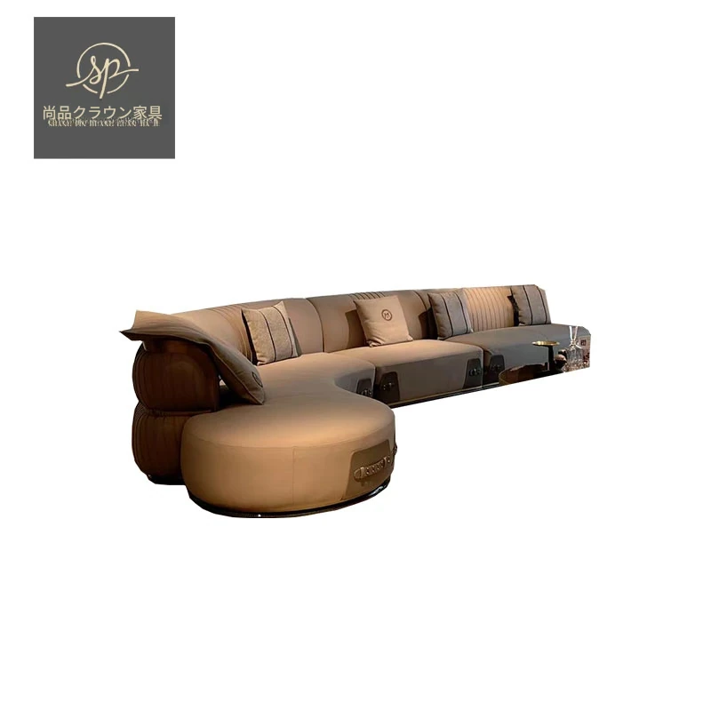 現代的イタリアンミニマリストコーナーソファセット - ヴィラ向けの広々としたリビングに最適な全皮L字型ソファ、ユニークなデザインで洗練された空間を演出します。