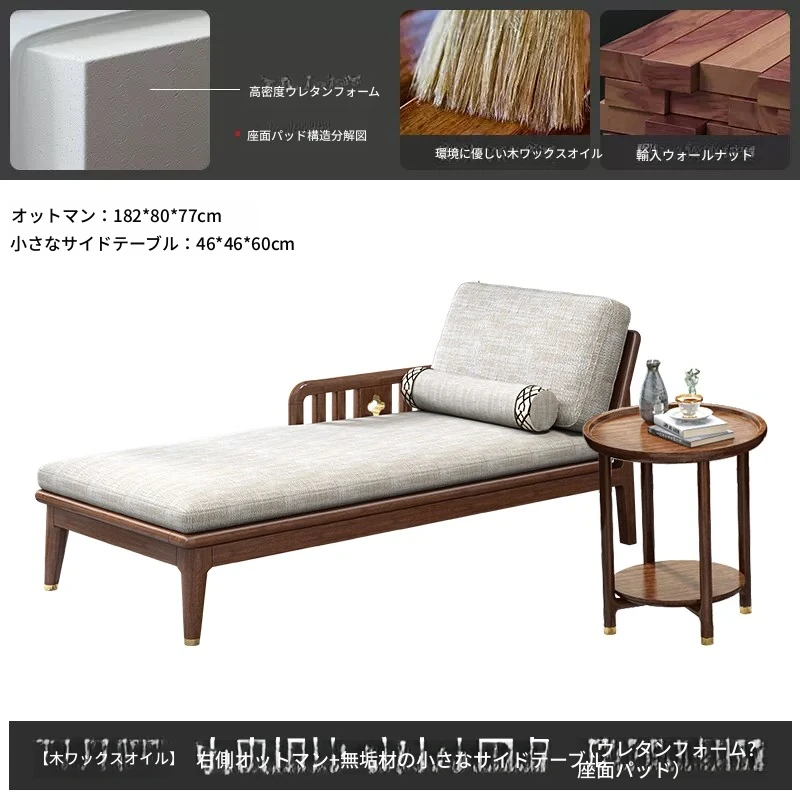 【ウッドワックス】右貴妃椅子+無垢小丸テーブル