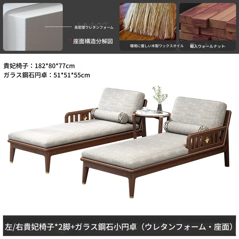 【ウッドワックス/ラテックス座布団】左/右貴妃椅子*2脚+ガラス石小丸テーブル