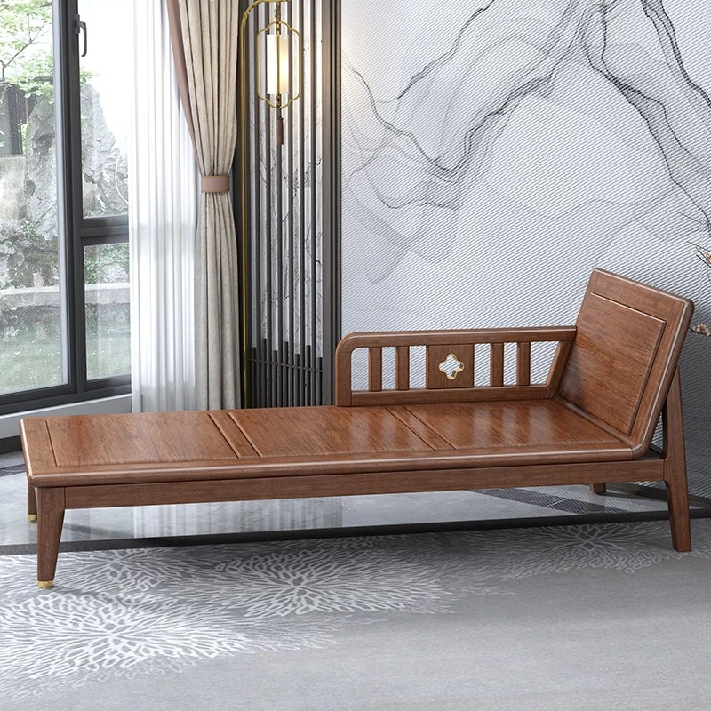 新中式スタイルの無垢材製貴妃椅子 - ウォールナットのリクライニングソファ、リラックスできる美人の休息スペース、小型住宅にも最適なデザイン。快適さとスタイルを兼ね備えた一品です!