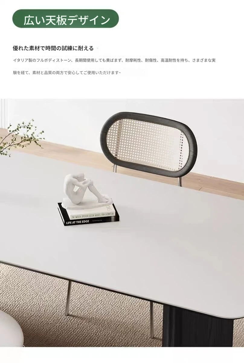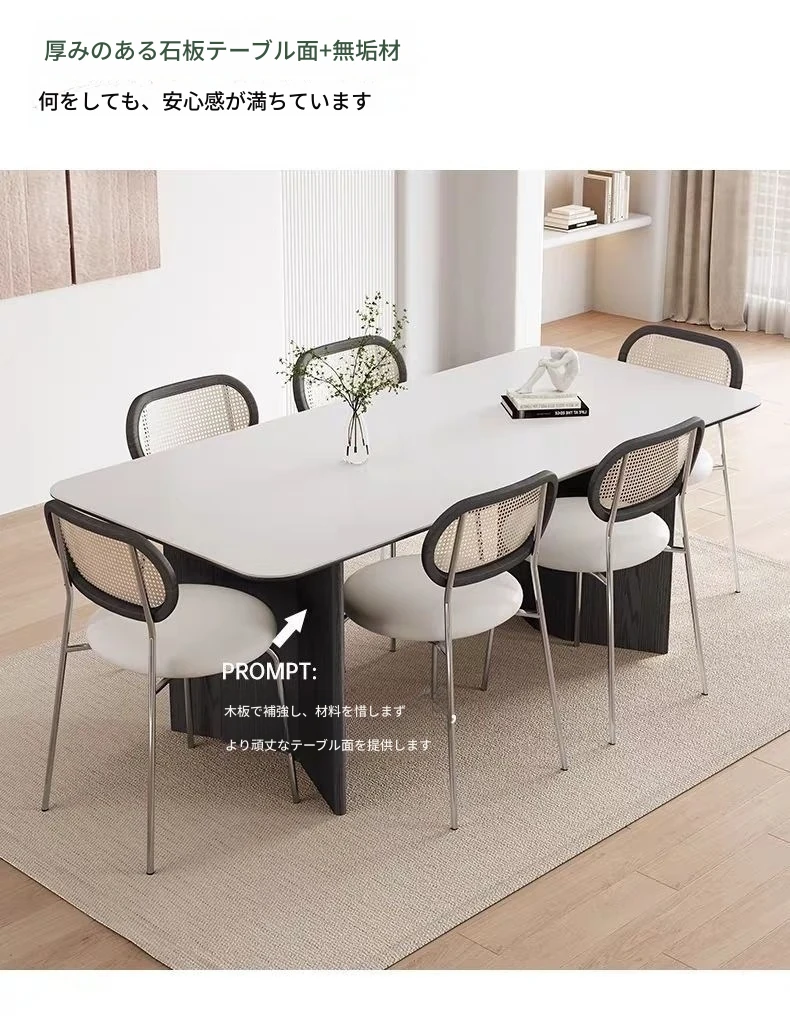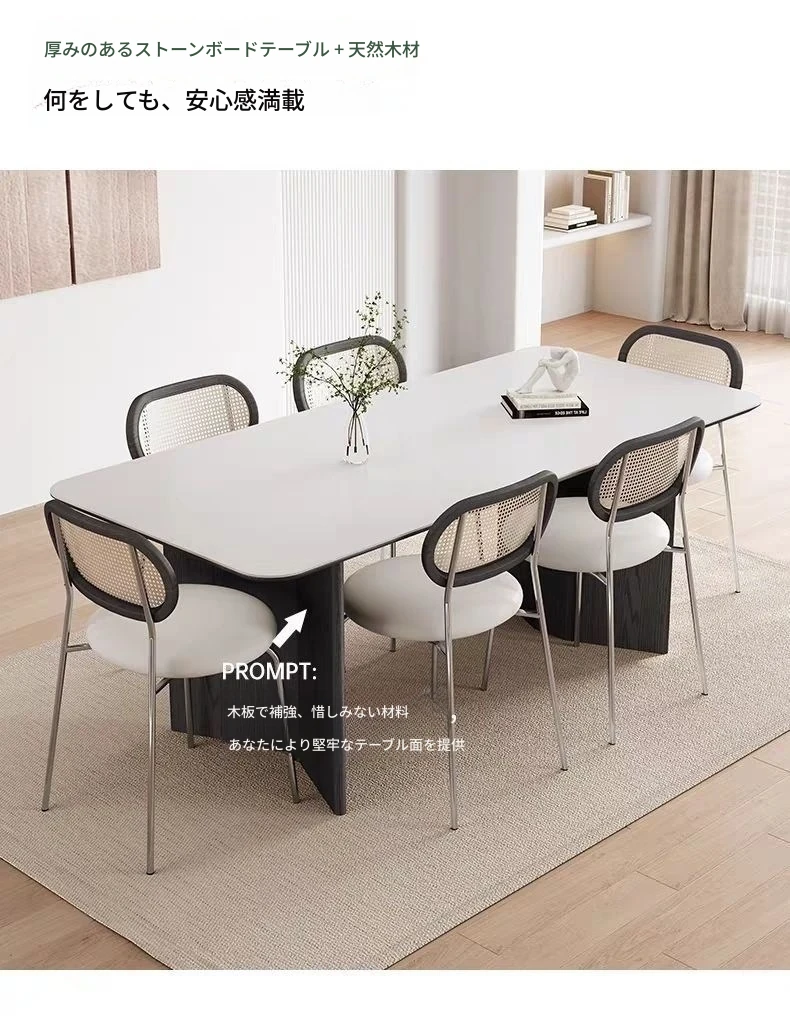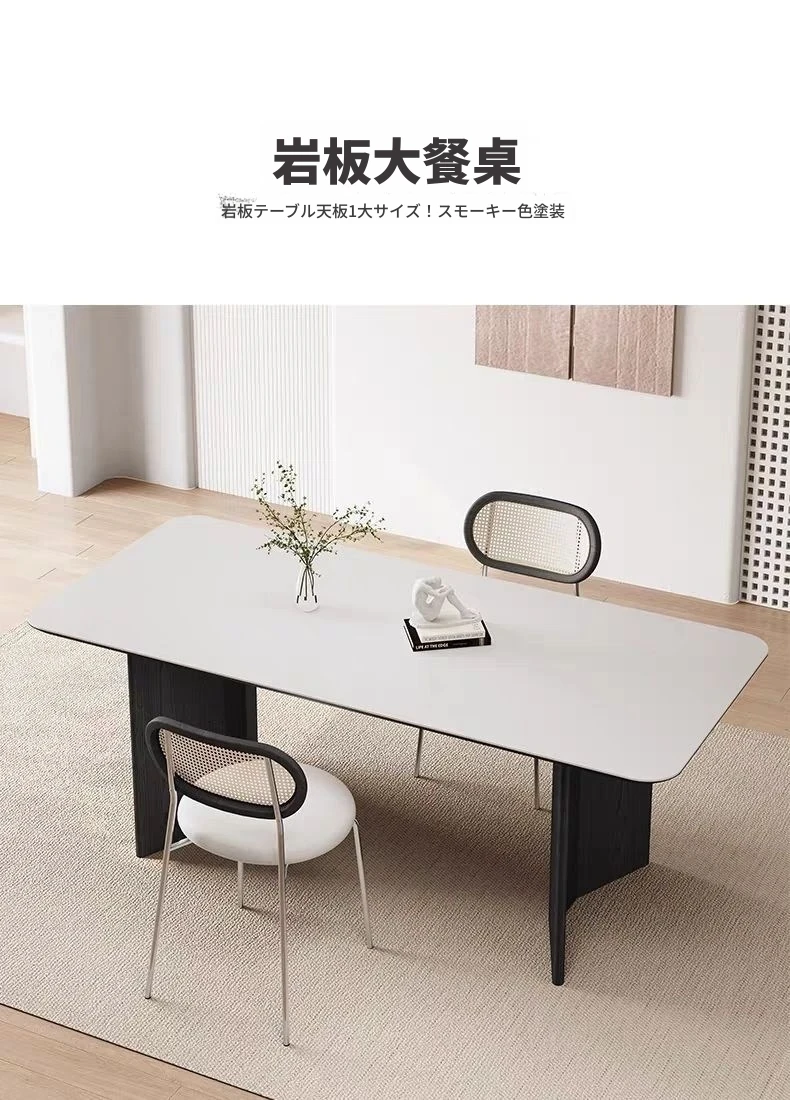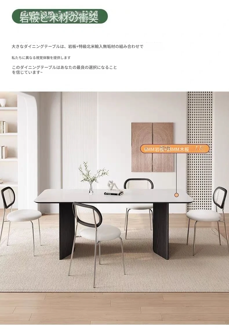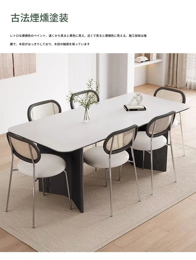 高級感溢れる無垢材ロックボードダイニングテーブル&チェアセット - イタリアンスタイルのシンプルで北欧テイストな長方形ワークテーブル、家族や友人との素敵なひとときを演出します。