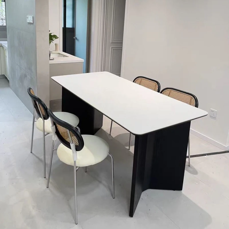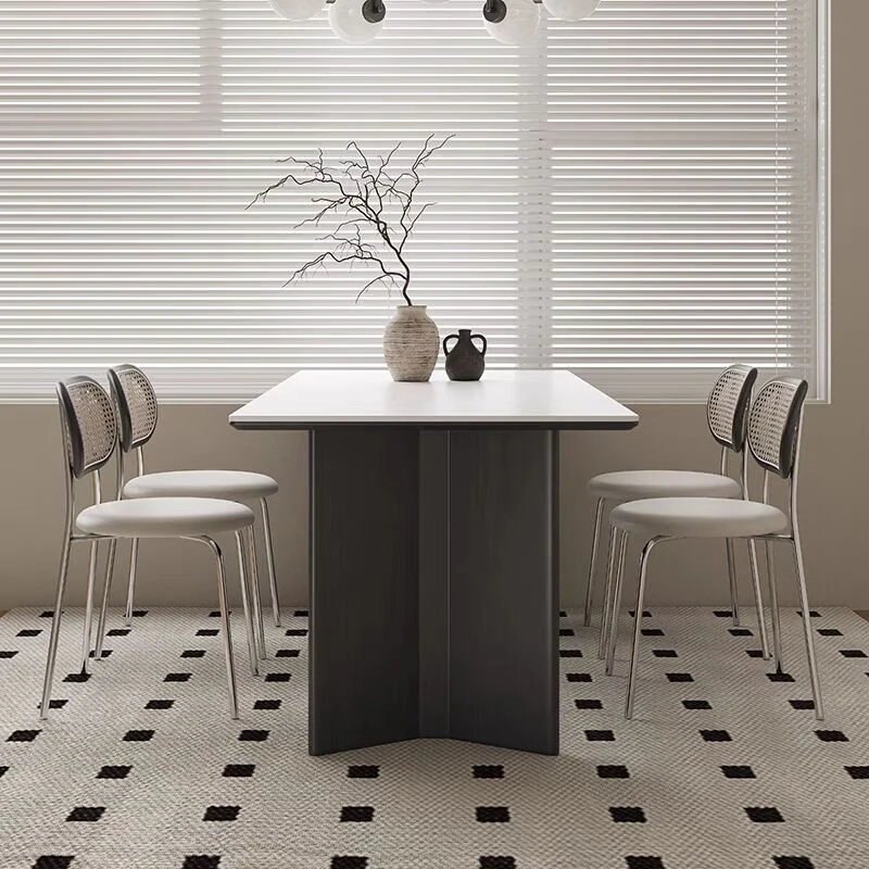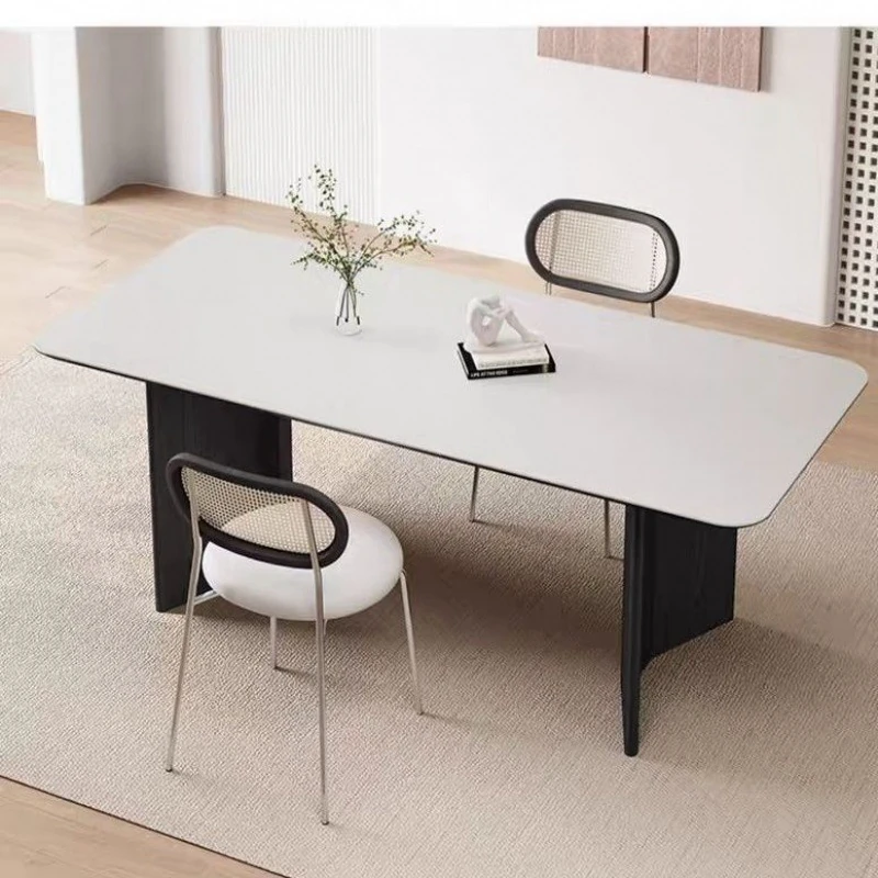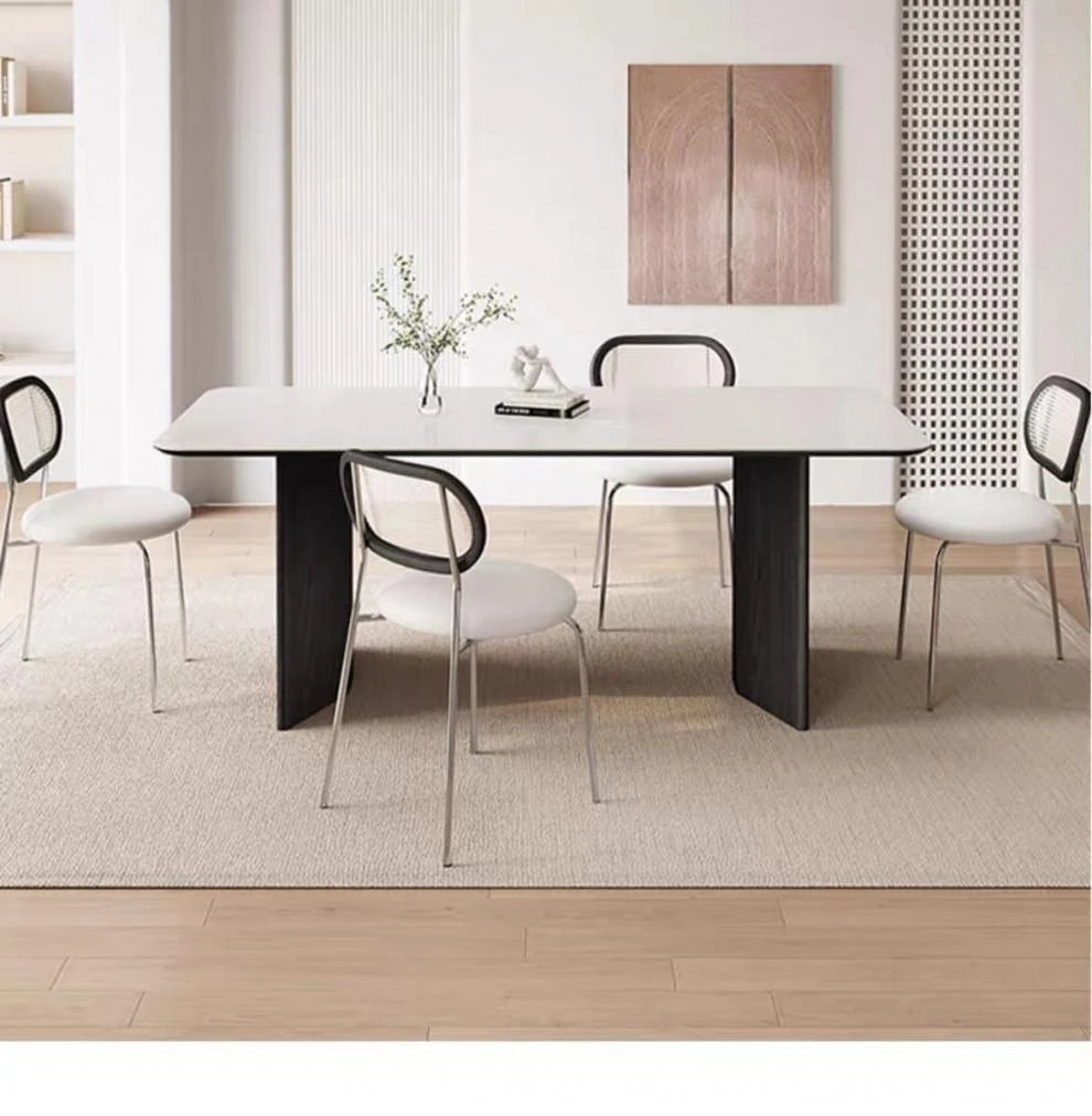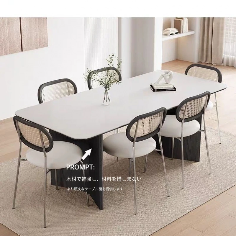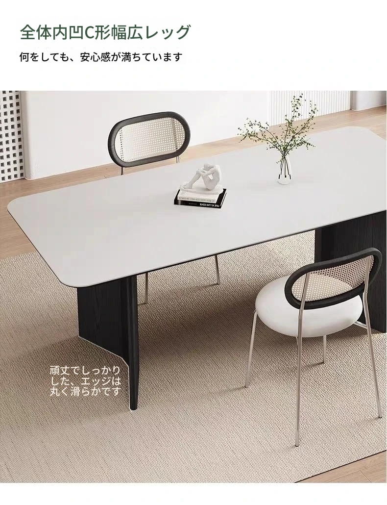 高級感溢れる無垢材ロックボードダイニングテーブル&チェアセット - イタリアンスタイルのシンプルで北欧テイストな長方形ワークテーブル、家族や友人との素敵なひとときを演出します。