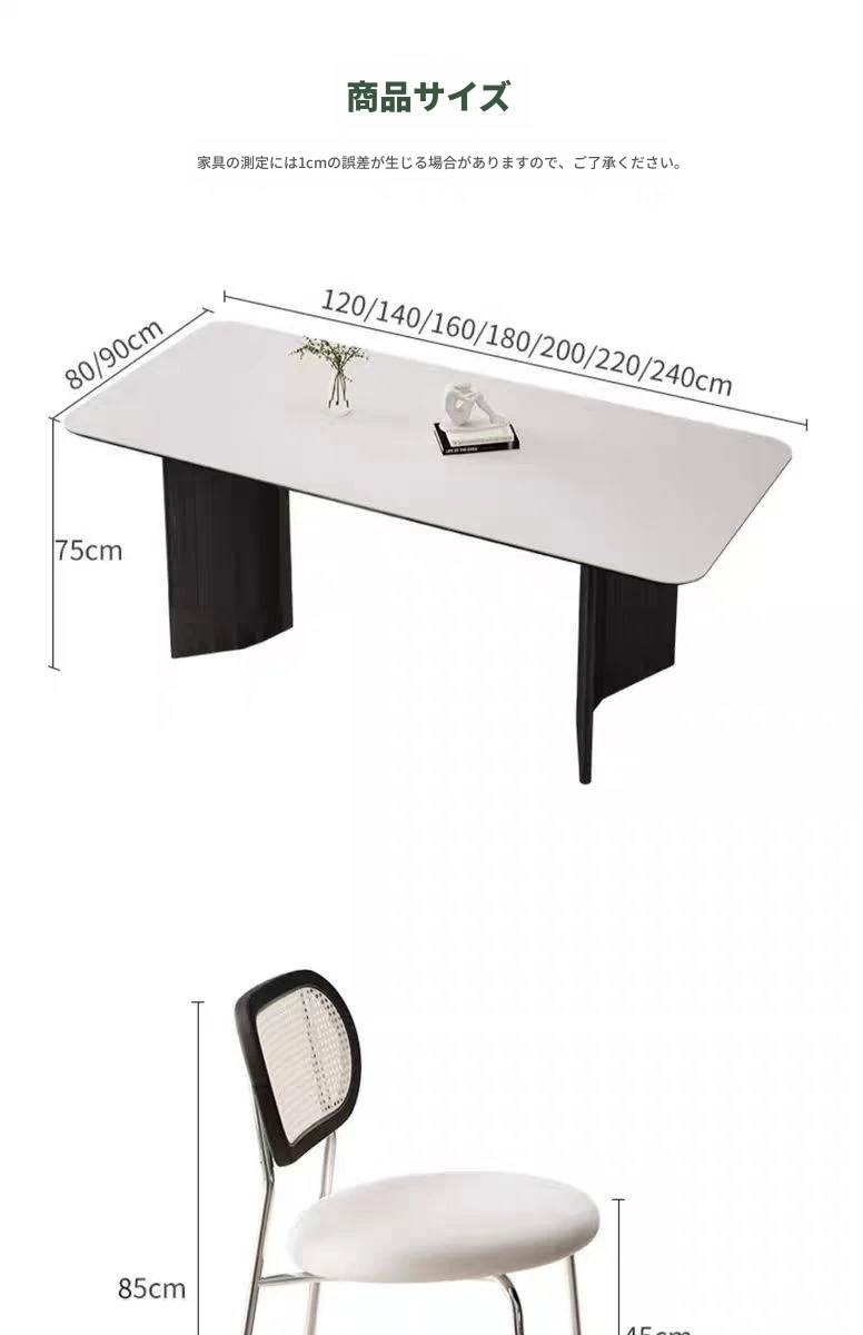 クリーム風ダイニングテーブル1.8*90、純白マット