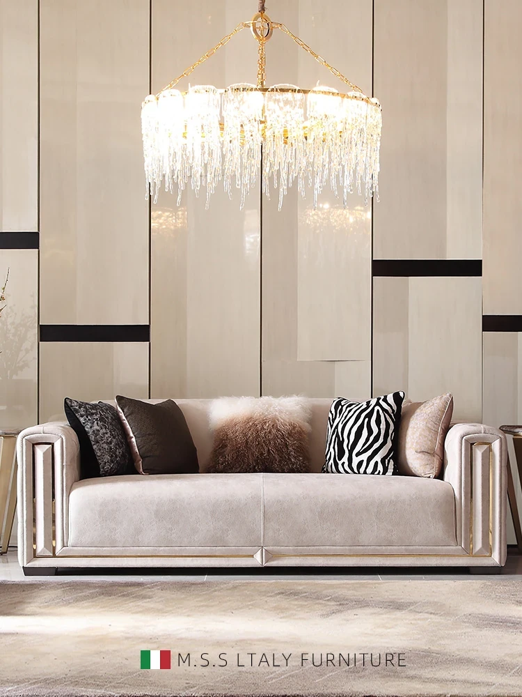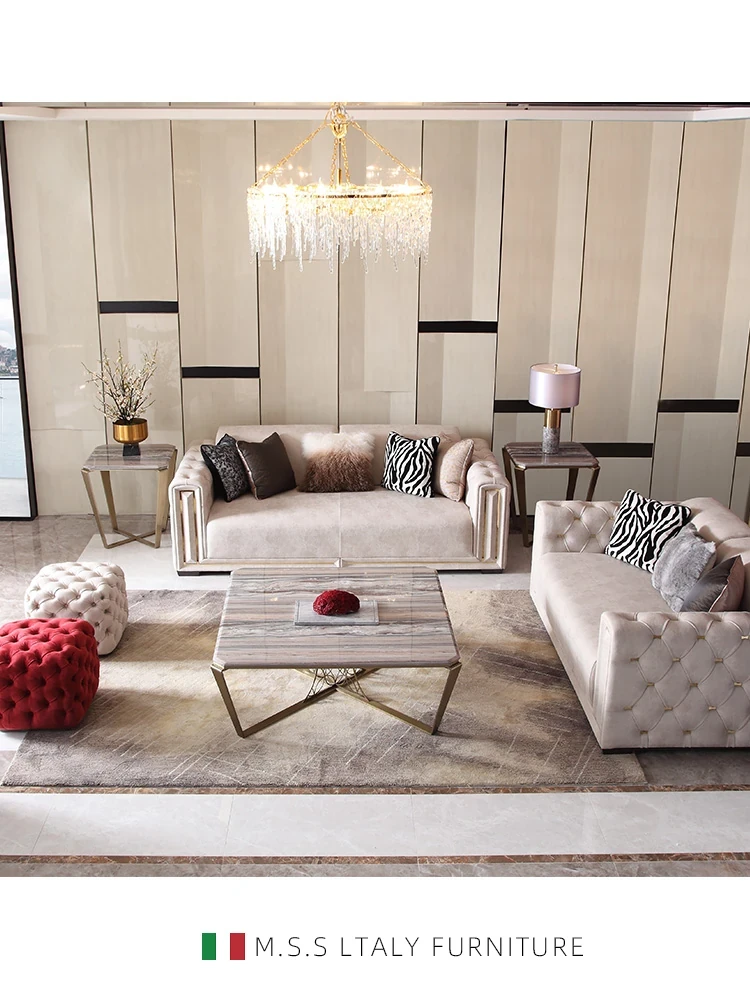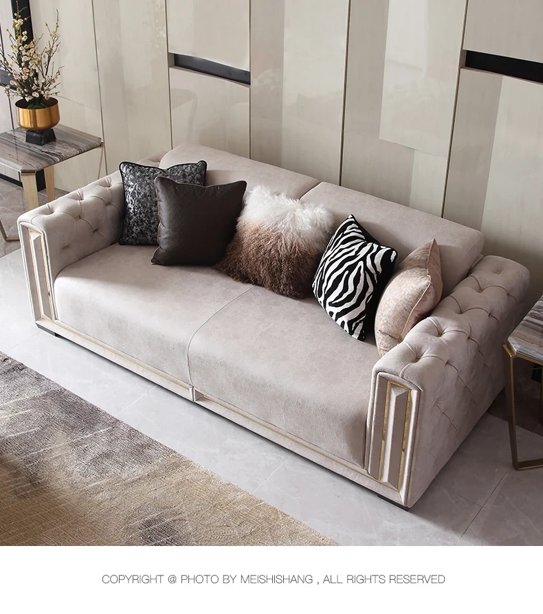 魅力溢れるExtetaオリジナルミニマル軽奢高級大規模別荘用本革ソファ - アメリカンスタイルのボタン付きソファで優雅なリビング空間を演出!