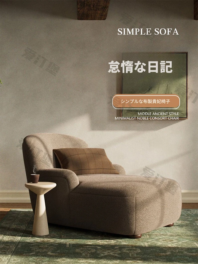 フランス風ヴィンテージ貴妃椅子|レトロで軽やかな布製の小型リクライニングソファ|快適な一人用貴妃椅子|主寝室にぴったりのスタイリッシュなインテリアアイテム!