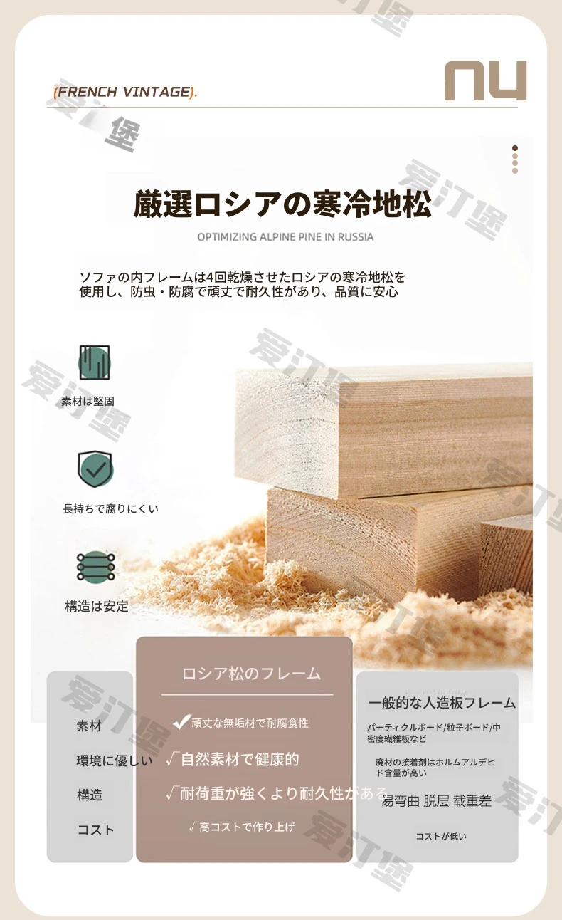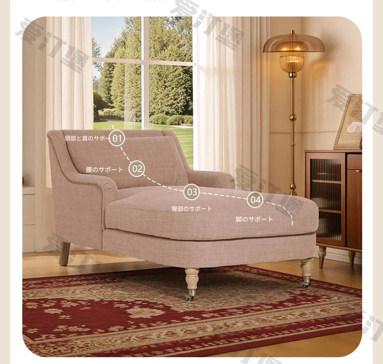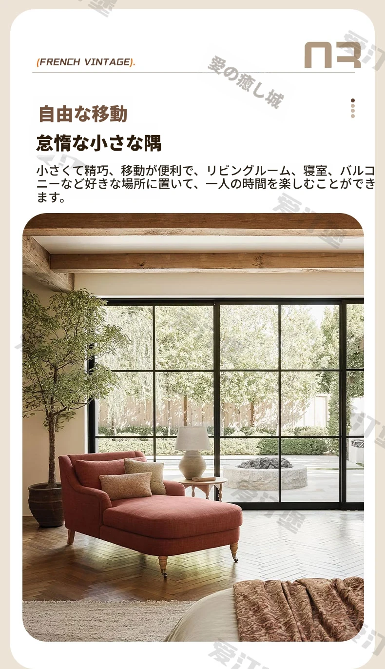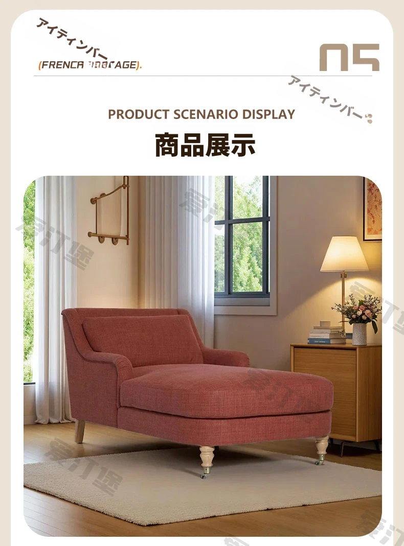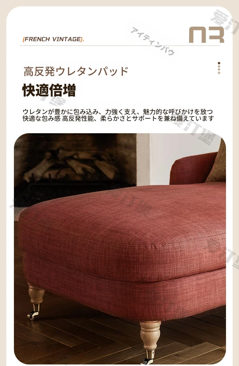 フレンチヴィンテージ小型トリプルソファー アンティークスタイルの主寝室用ロマンティックな貴妃椅子 高級感漂う無垢材製リラックスチェア おしゃれで落ち着いた空間を演出