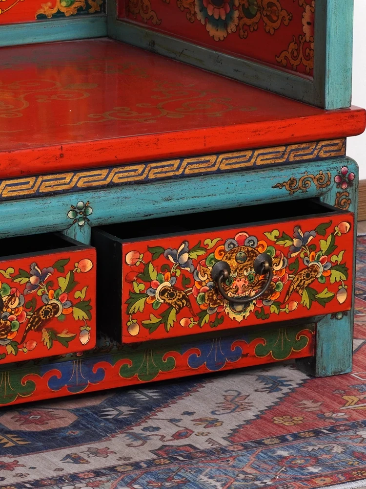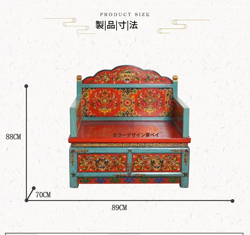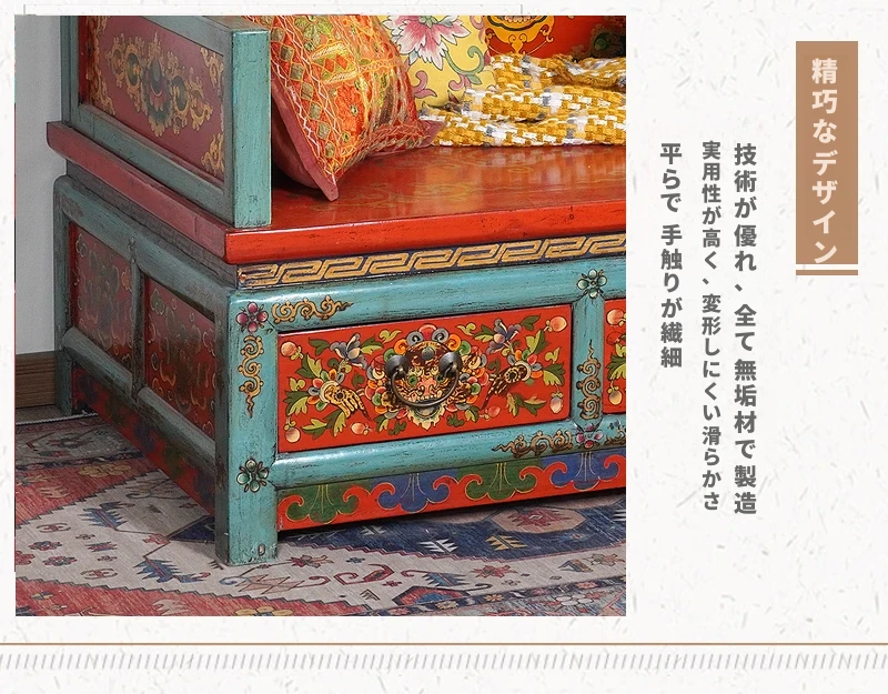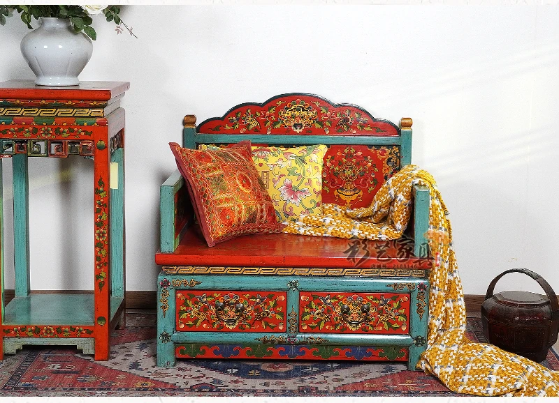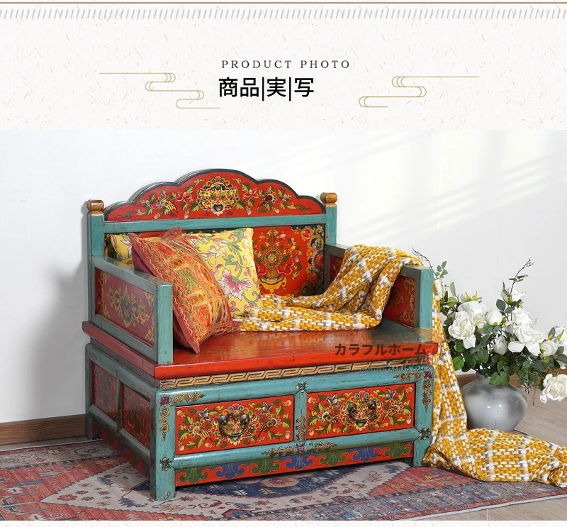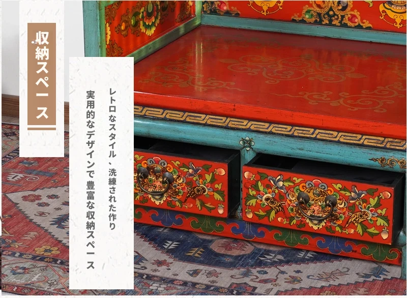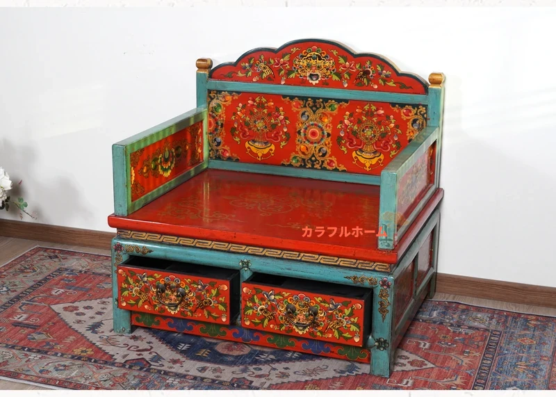 チベットスタイルの手描き木製主用椅子|アンティーク風リラクゼーションソファ|新中式アート家具|おしゃれなインテリアにぴったり!